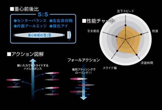 唯一無二の軽比重によるスライドとフォールでの運動性能を昇華した次世代の鉄ジグです。
