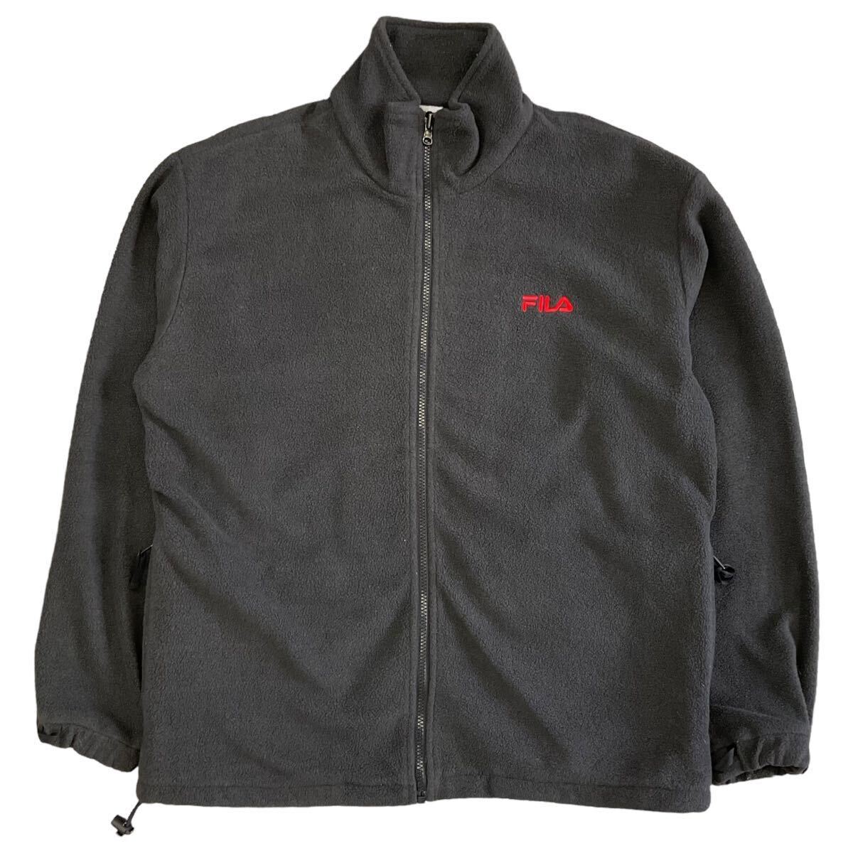 90s FILA フリース ジャケット フルジップ パーカー ブラック M オールド フィラ ロゴ刺繍 ヴィンテージ