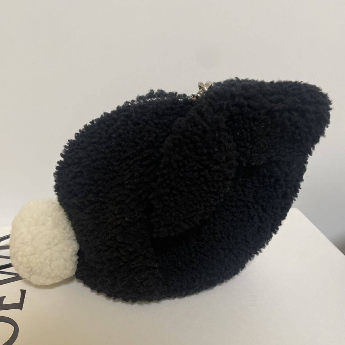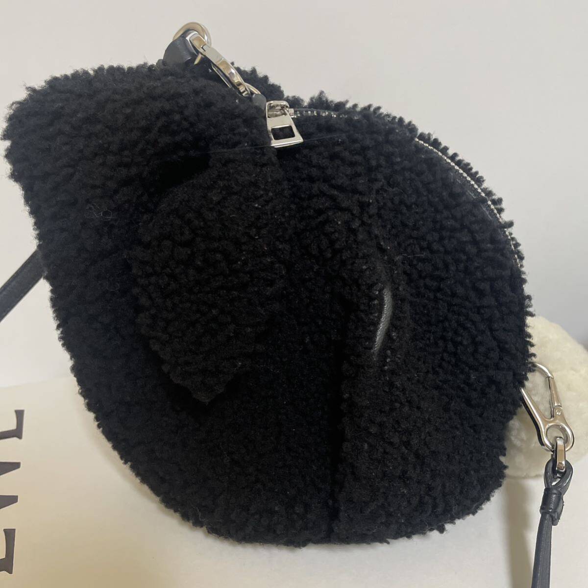 ★レア 希少 入手困難 ロエベ LOEWE loewe 限定品 ラビット ショルダーバッグ うさぎ ボア ムートン 黒 ブラック 白 ホワイト ミニバッグ ポシェット 斜め掛け アニマルシリーズ