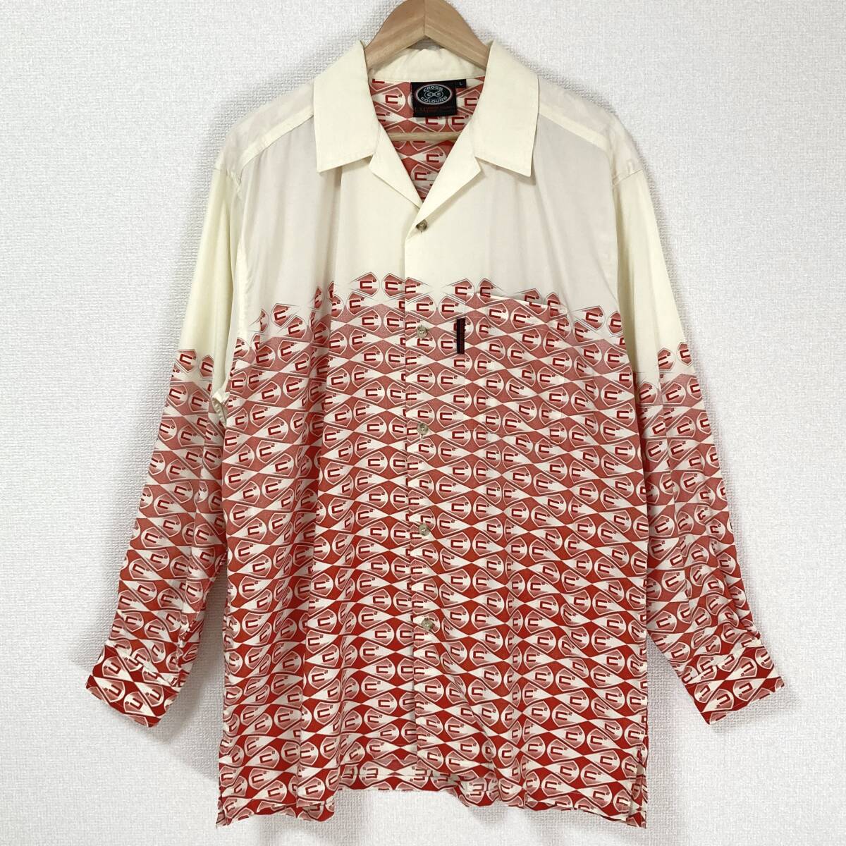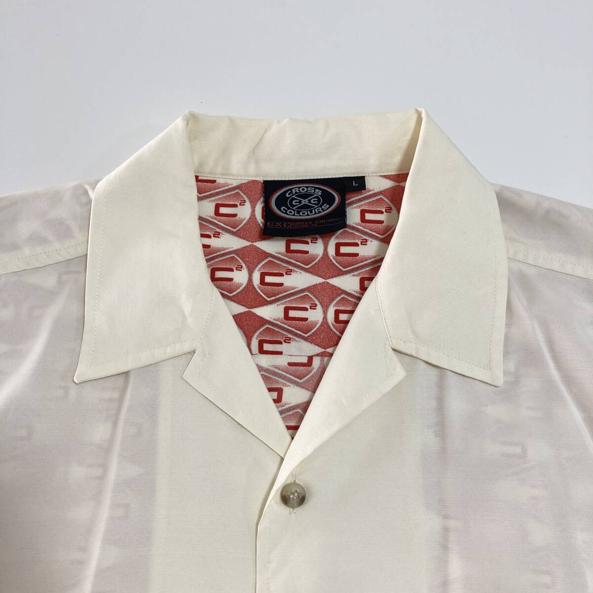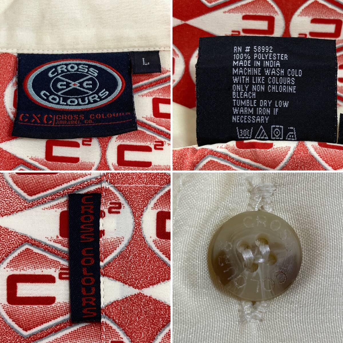 90s 00s CROSS COLOURS ロゴ 総柄 開襟 長袖シャツ Lサイズ クロスカラーズ クロカラ オープンカラー Y2K オールド 4020126