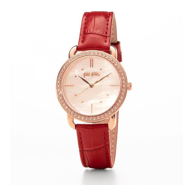 素材:ステンレススチール(ピンクゴールドプレーテッド)、皮革、クリスタルガラス