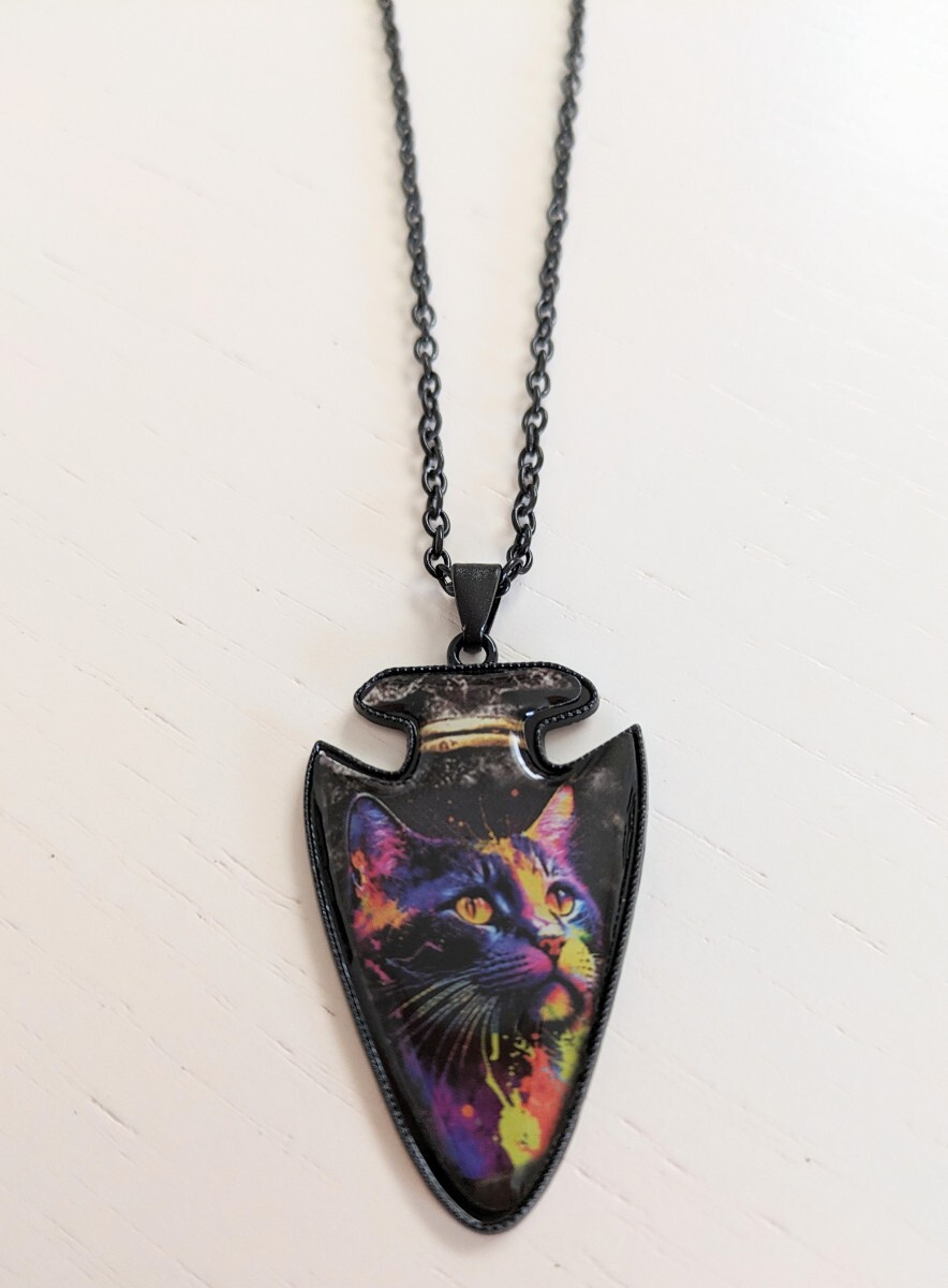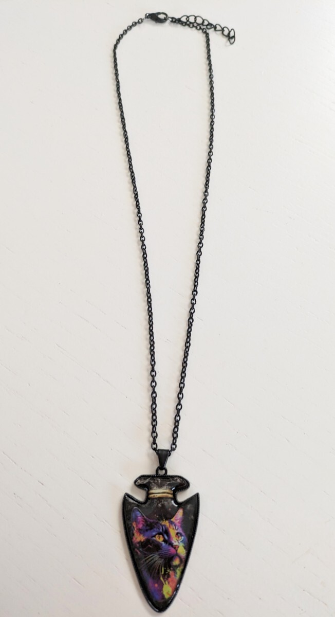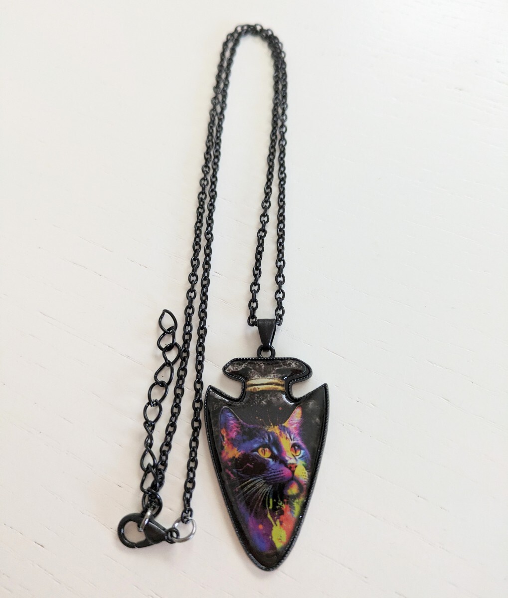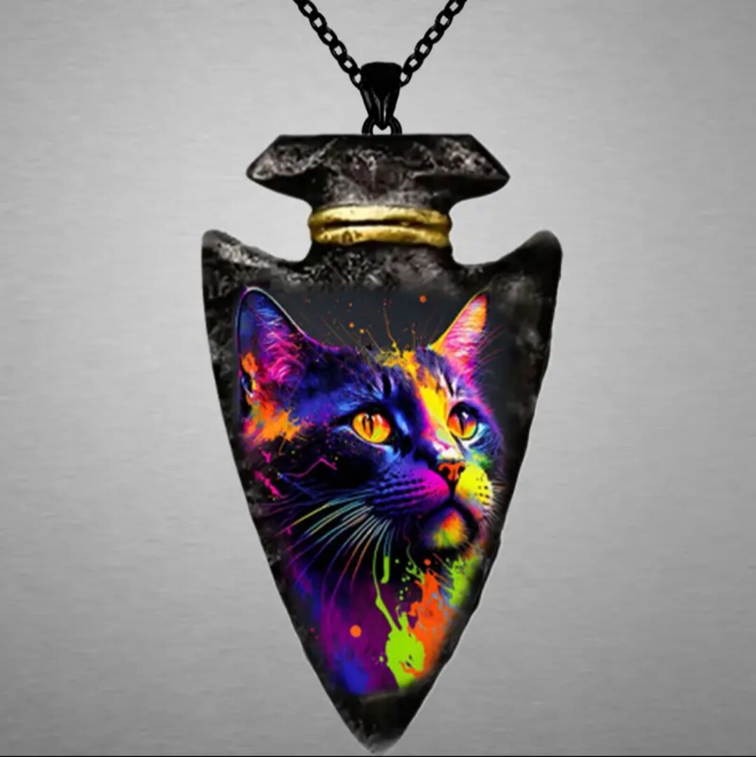 こちらは、新品未使用 エレガント カラフル cat 猫 ヴィンテージ 三角形 ペンダントネックレス になります♪