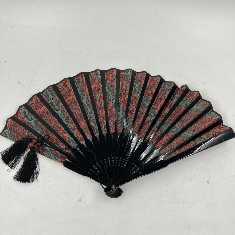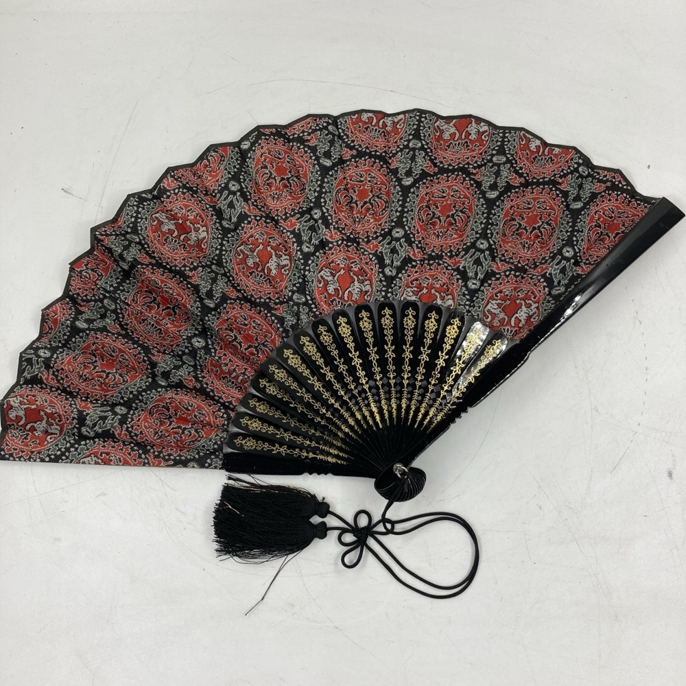 扇子 和風小物 ブラックカラー 柄物 箱付き★K1275D1