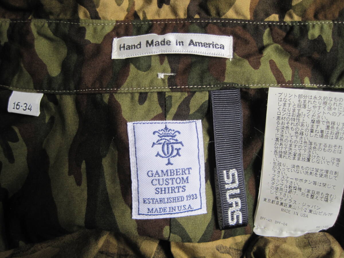 サイラス×ギャンバートカスタムシャツ カモフラ ボタンダウンシャツ。サイズ3。アメリカ製。