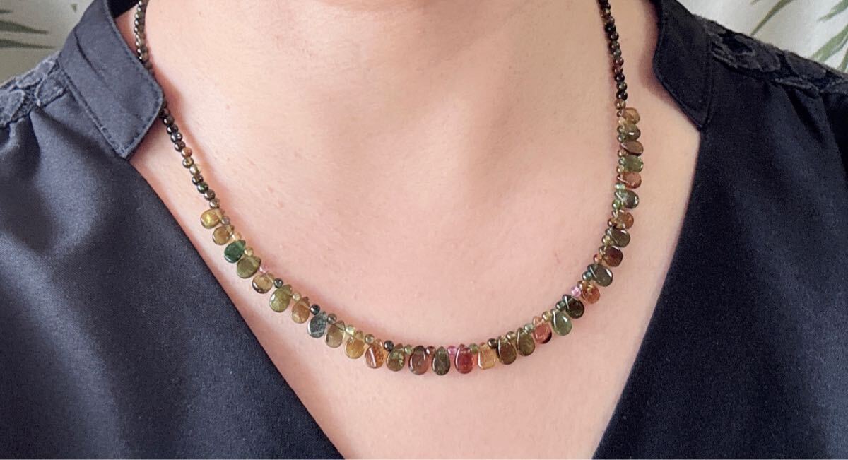 トルマリンには、様々な色彩の他に、もう1つ大きな特徴があります。この石の結晶は柱状をしていますが、両端の性質がプラスとマイナスに異なっており、それによって帯電(電気を帯びる)することです。同じような性質は水晶にも見られますが、トルマリンの方がこの性質が強く、和名では「電気石」と呼ばれています。トルマリン自体が発電したり、電気を通すわけではありません。何もしなければ、ただの石ですが、こすったり(摩擦)熱を加えると帯電し、静電気(マイナスイオン)を発生するといわれています。そのため、トルマリンのこの性質を活かすのであれば、ぜひ肌に直接触れるネックレスとして身に着けることをおすすめ致します。