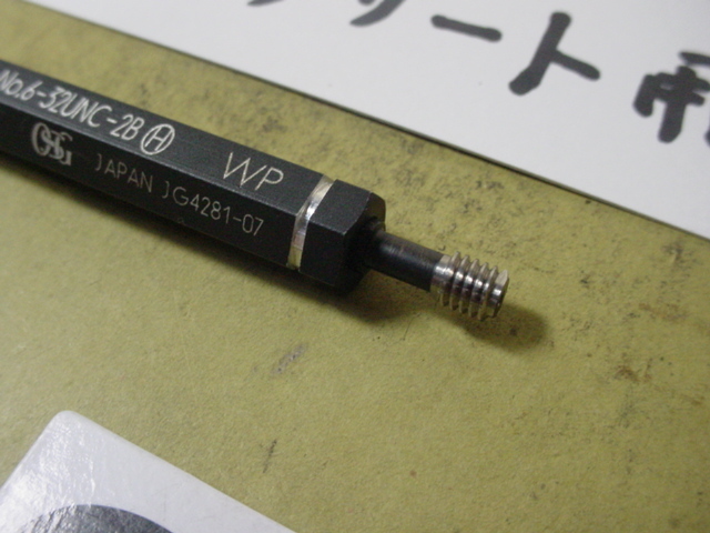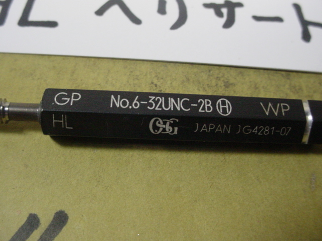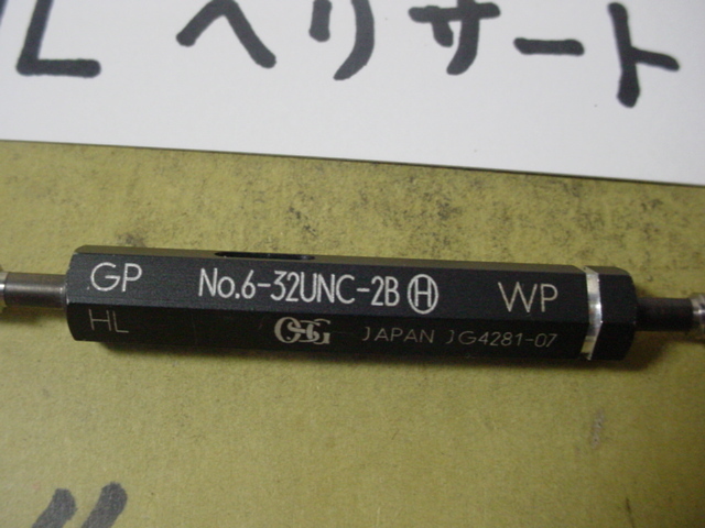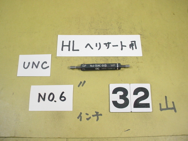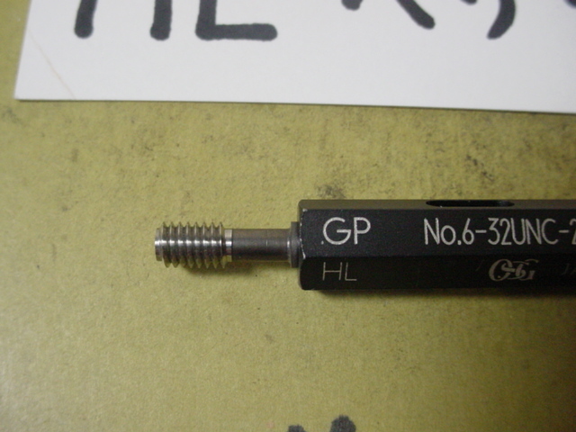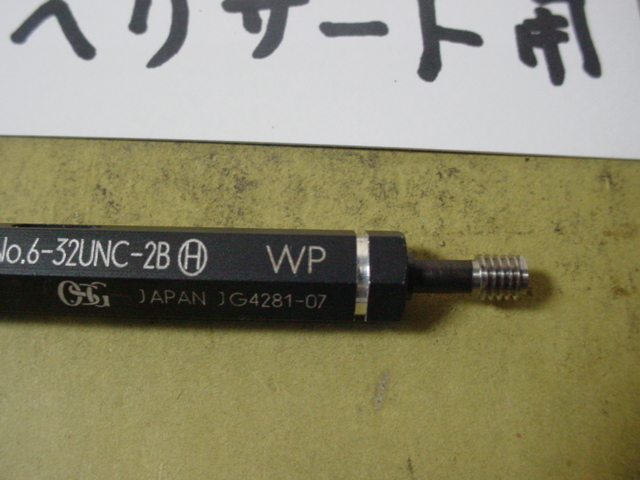 ヘリサート用の インチ目サイズのネジゲージ プラグゲージタイプです。 ヘリサートタップの検査用のネジゲージの中古品です。サイズ HLタイプの NO.6-32UNC-2B の GP-WPです。ヘリサート用です。標準規格のネジゲージではありませんので間違わないでください。間違い交換は致しません。写真現状有り姿渡しでご入札下さい。