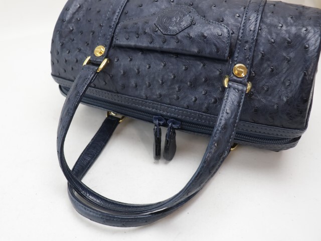 | 2403-78 デベール ハンドバッグ DEVERRE AOYAMA オーストリッチ製 ネイビー 金金具 | |