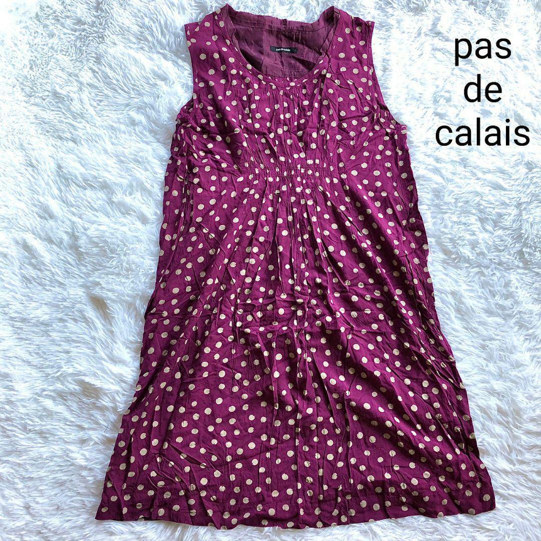 pasdecalais パドカレ ノースリーブ センターギャザー ドット ワンピース パープル 紫 春夏 38 M