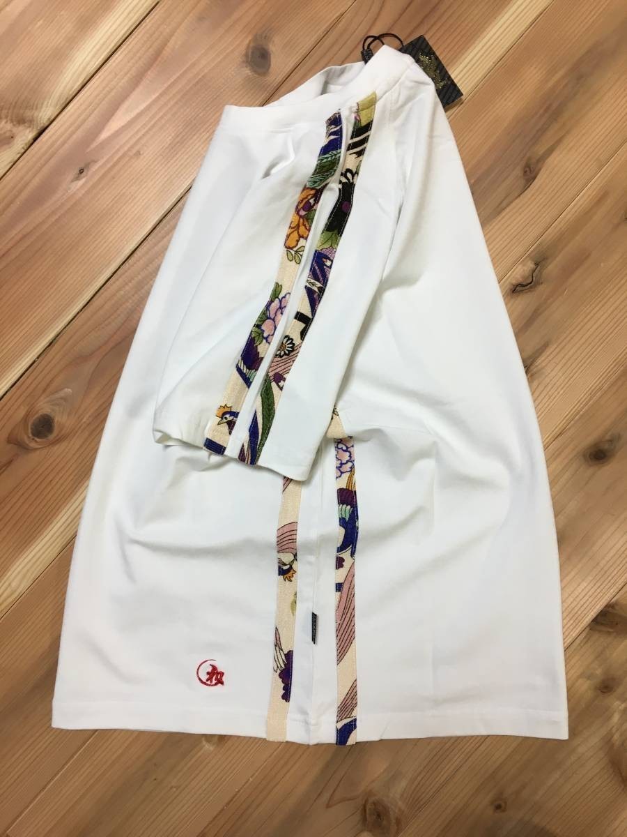 カジュアル製品では、クロコ柄やパイソン柄のフェイクレザーのゴージャスなアイテムや、京都の西陣織などで生産した彩り鮮やかなオリジナル帯地をデニム等に派手に切り替えた絢爛豪華なアイテムを中心に展開。