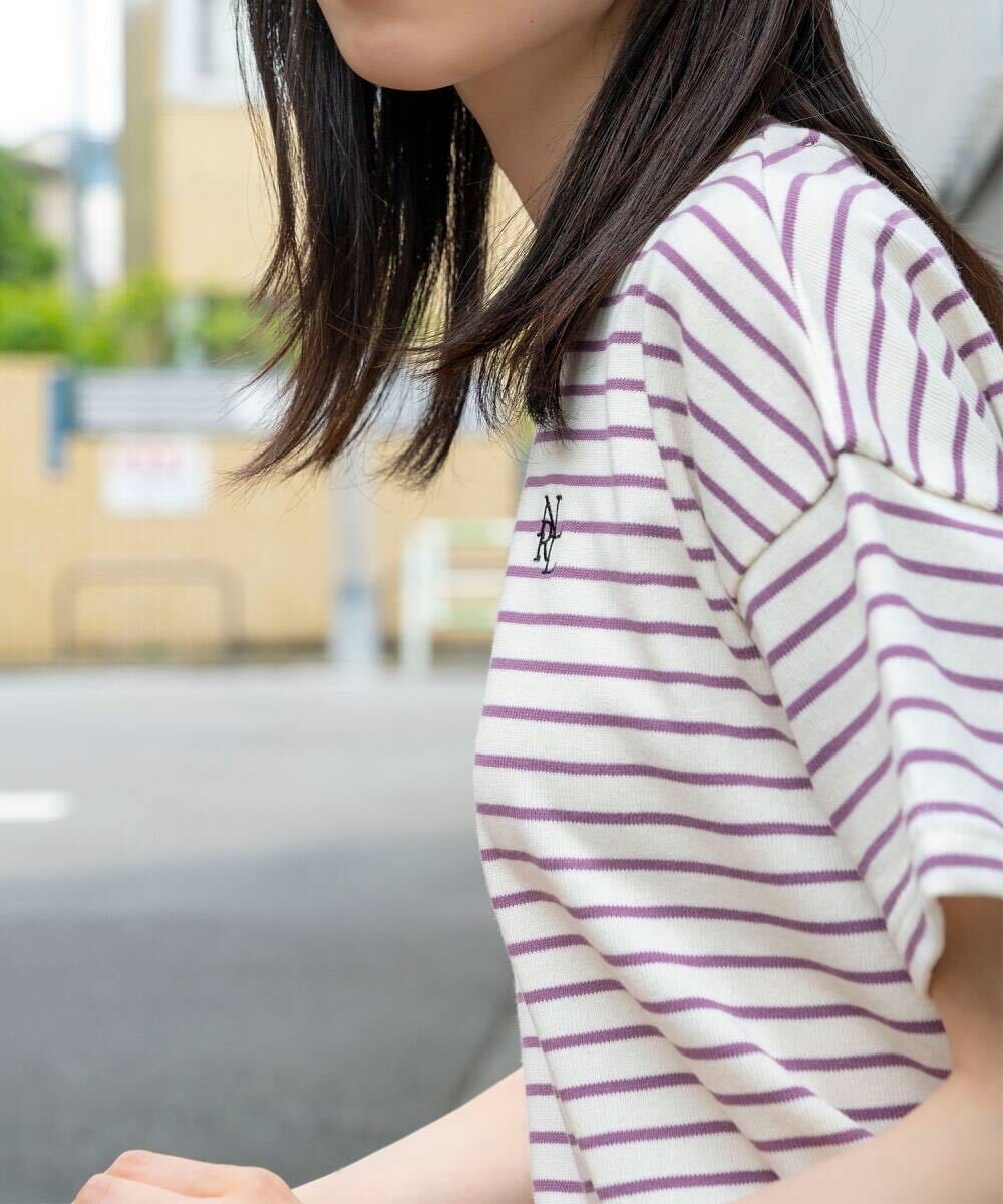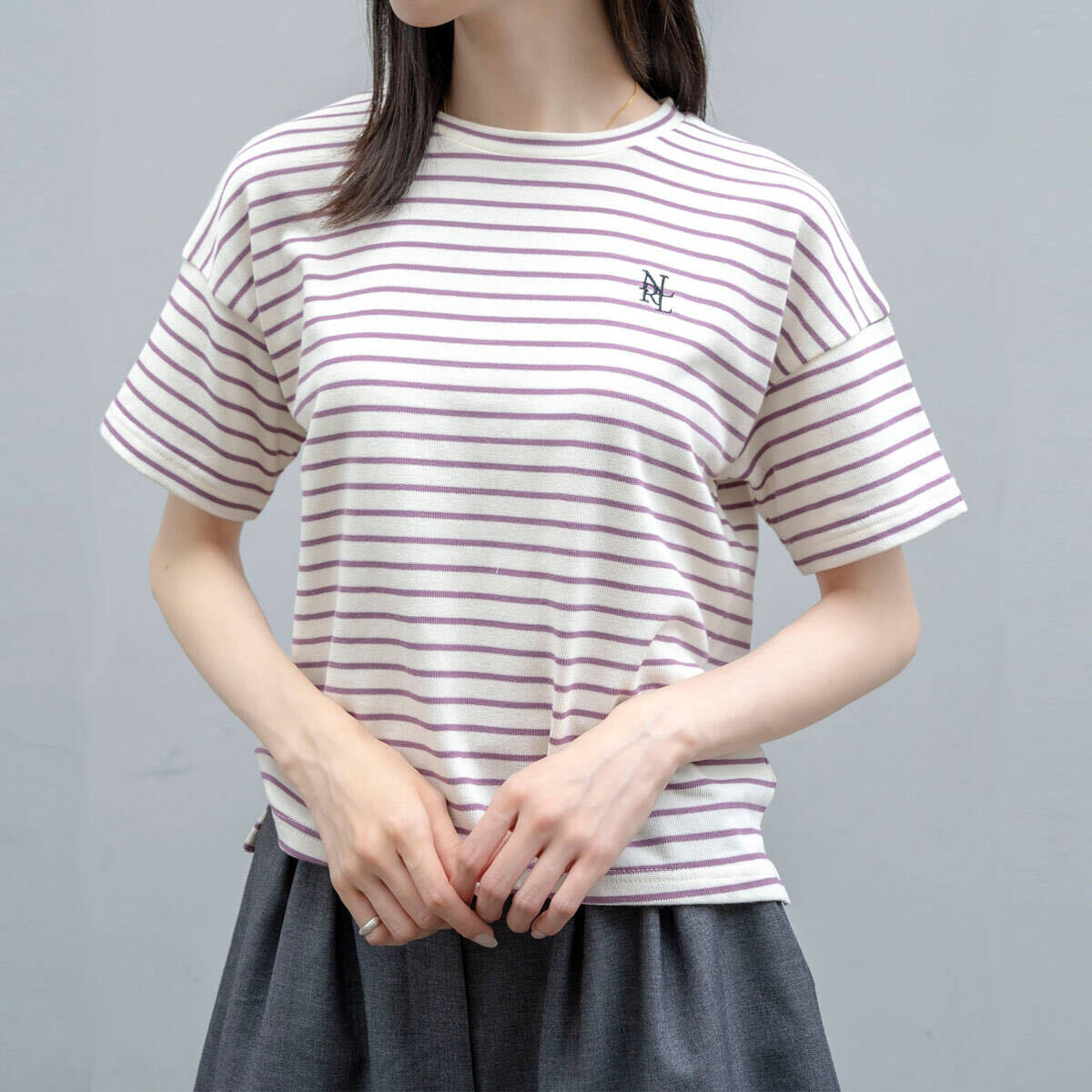 Nora Lily ノラリリー Tシャツ BORDER BIG S/S TOP レディース パープル フリーサイズ(M/L)