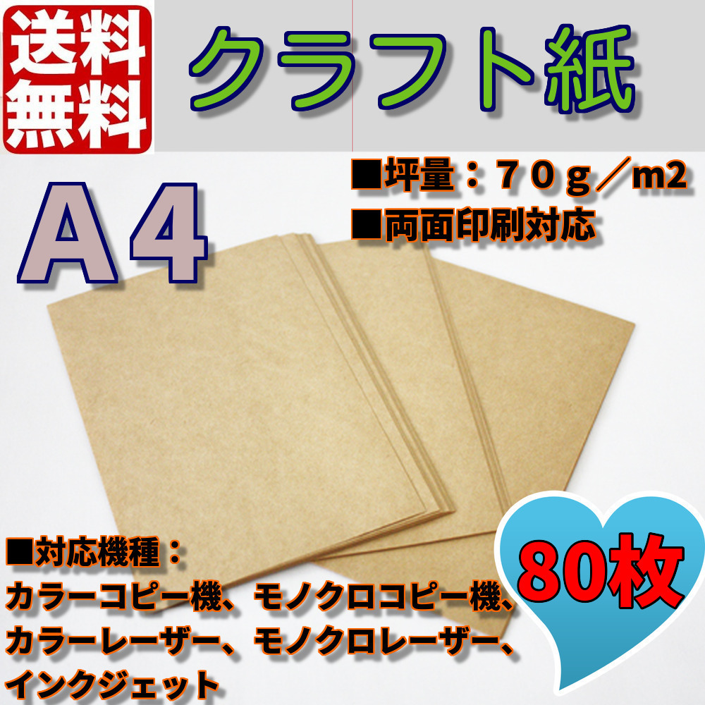 送料無料 クラフト用紙 クラフト紙/クラフトペーパー A4/80枚 ハンドメイド コピー用紙 両面印刷対応