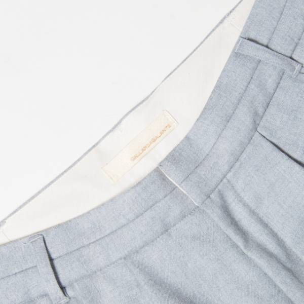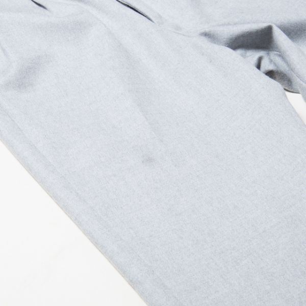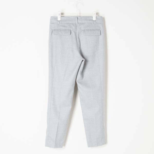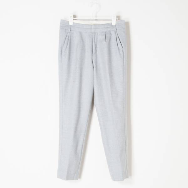 センタープレス入りのウールパンツです。裏地付きなので、薄手でも寒くないです。スニーカー等でカジュアルに着くずして合わせて頂くのがお勧めです。