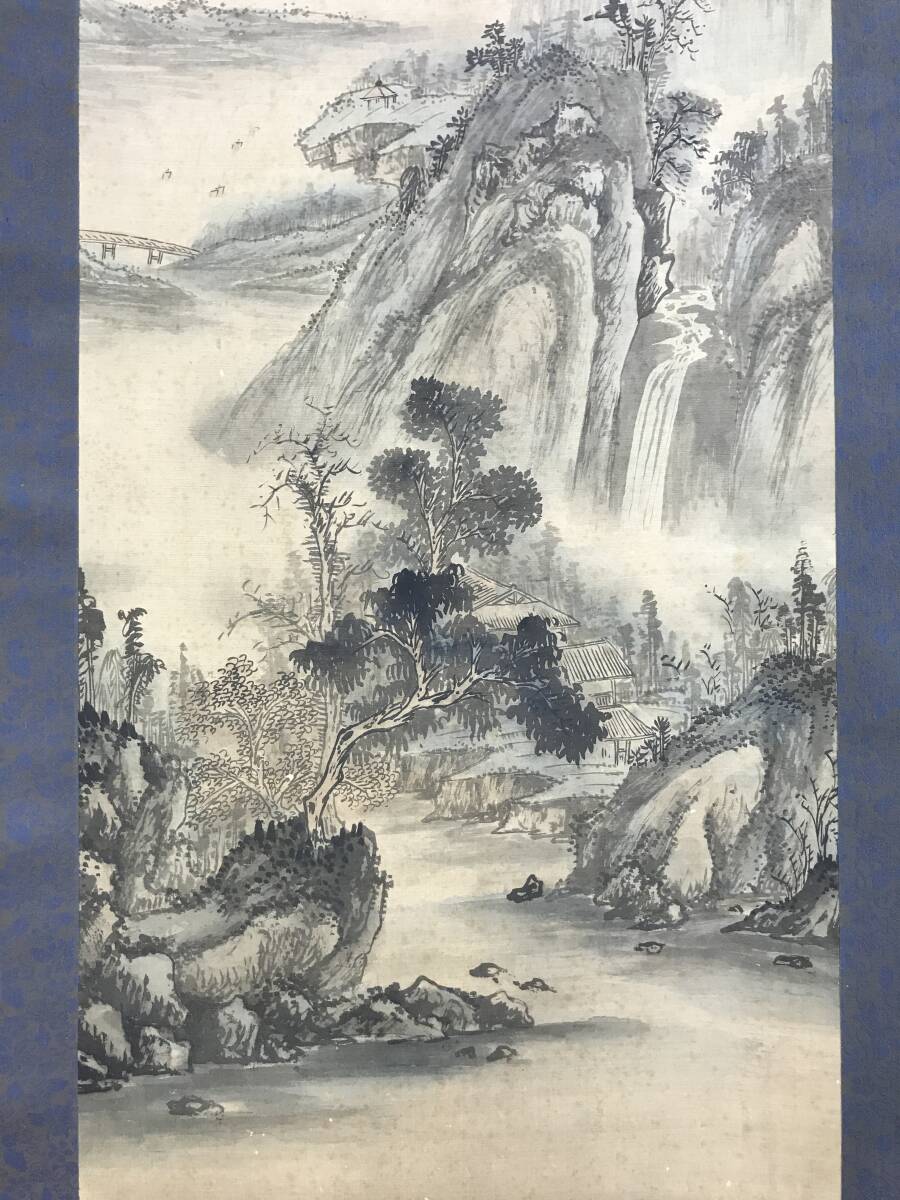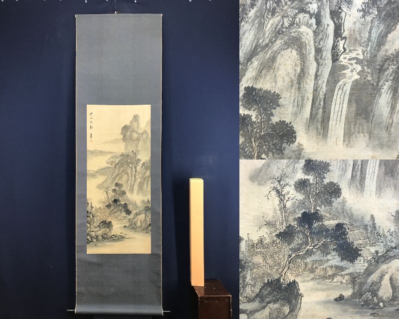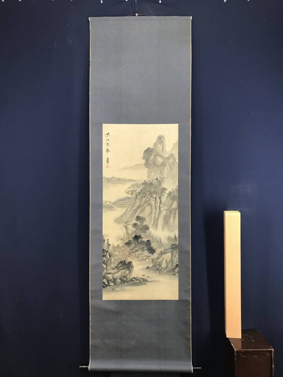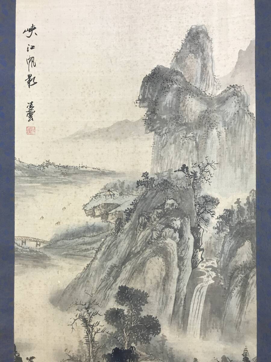 真作/凌雲筆/山水図/峡江帆影図/中国山水図/掛軸☆宝船☆AF-558