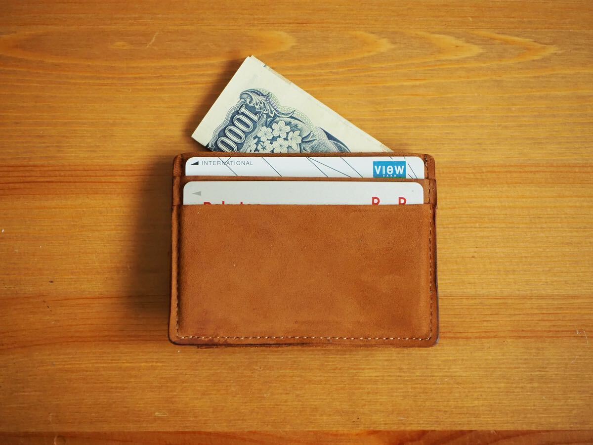 オールレザーで内生地は使用しておりません。革が伸びることを想定してカードポケットは少し窮屈になっておりますので、予めご了承くださいませ。また、皮革製品ですので元からの傷やシワが入る場合がございます。