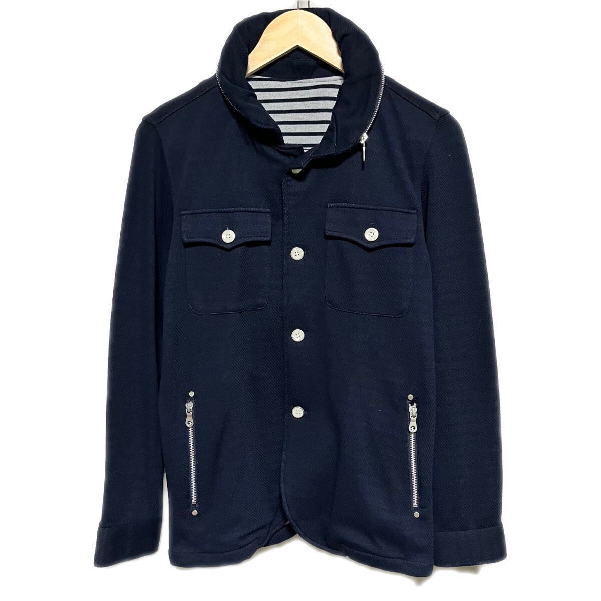 FA26hh【THE SHOP TK ザ ショップ ティーケー】サイズ M ネイビー フーディ ジャケット メンズ アウター フード 2way ポケット ジップ