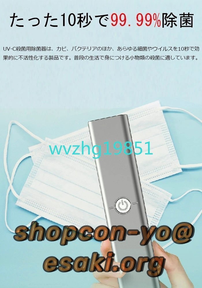 UV-C 除菌器 紫外線LED 99.99%細菌消滅 除菌 消毒機 UV-C LED除菌器 10秒除菌 99.9% USB充電式 外出 小型 軽量 持ち運び ☆2色選択/1点