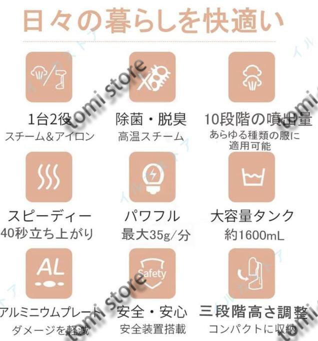アイロン スチーム スチームアイロン おしゃれ コンパクト 小型 除菌消臭におい 1.6L給水タンク 高温スチーム 温度調節 梅雨準備対策