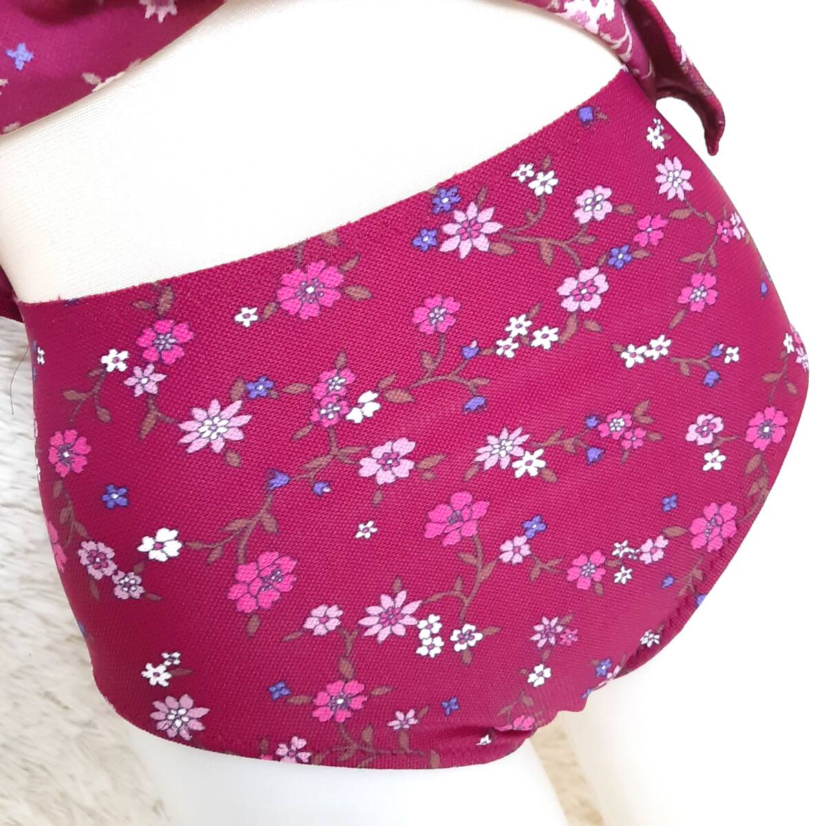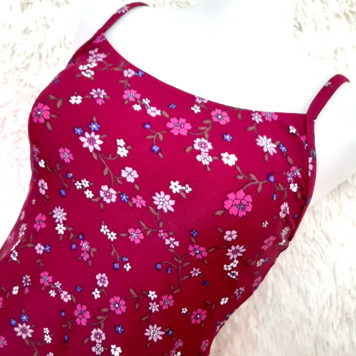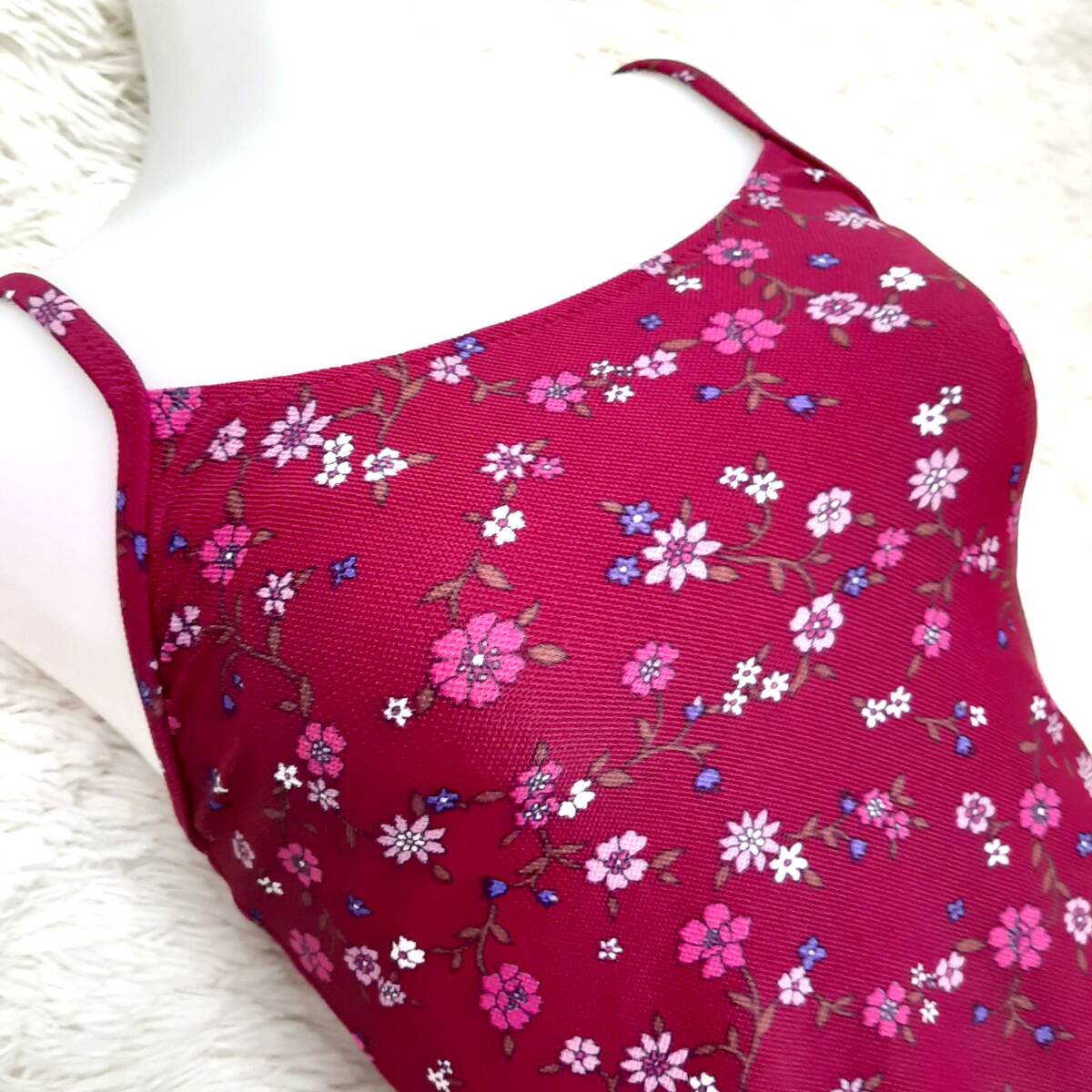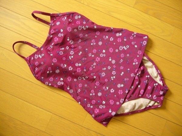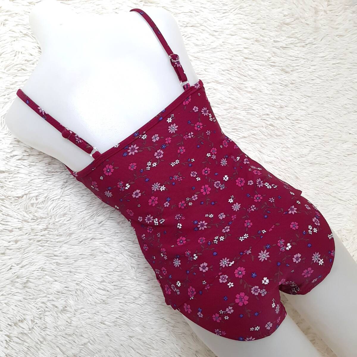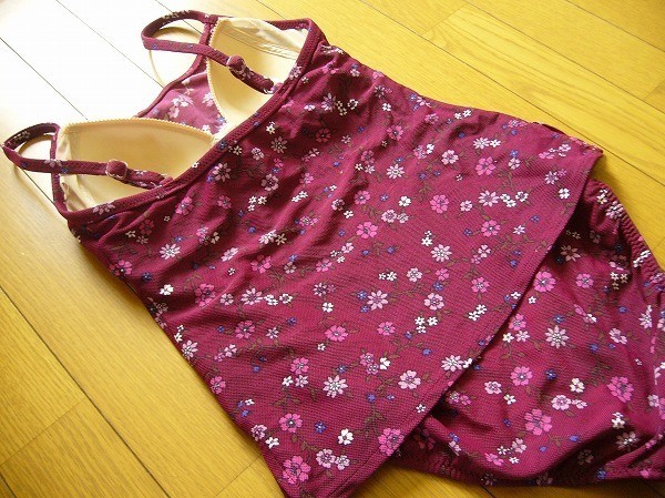 匿名配送★ニッキー ソフト 花柄 タンキニ風  ワンピース 水着 エンジ 紫 M ウ
