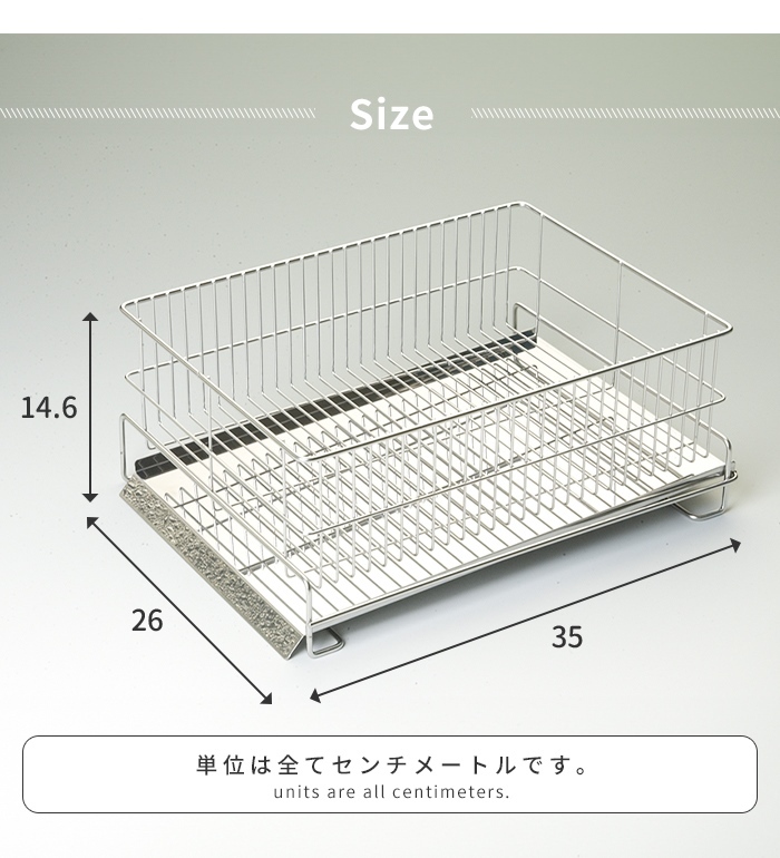 [水切りラック本体]幅35×奥行26×高さ14.6cm [トレー]幅37×奥行24.5×高さ2cm |