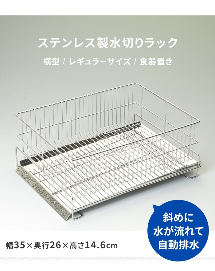 水切りラック ステンレス 35cm 26cm 14.6cm 水を自動で流すトレー付 日本製 シンク横 シンクサイド シンク 水切りかご 水切りトレー キッチン収納 キッチンラック 斜めに流れる 水捨て不要 家事 大容量 さびにくい 食器 キッチン おしゃれ 一人暮らし 新生活 |