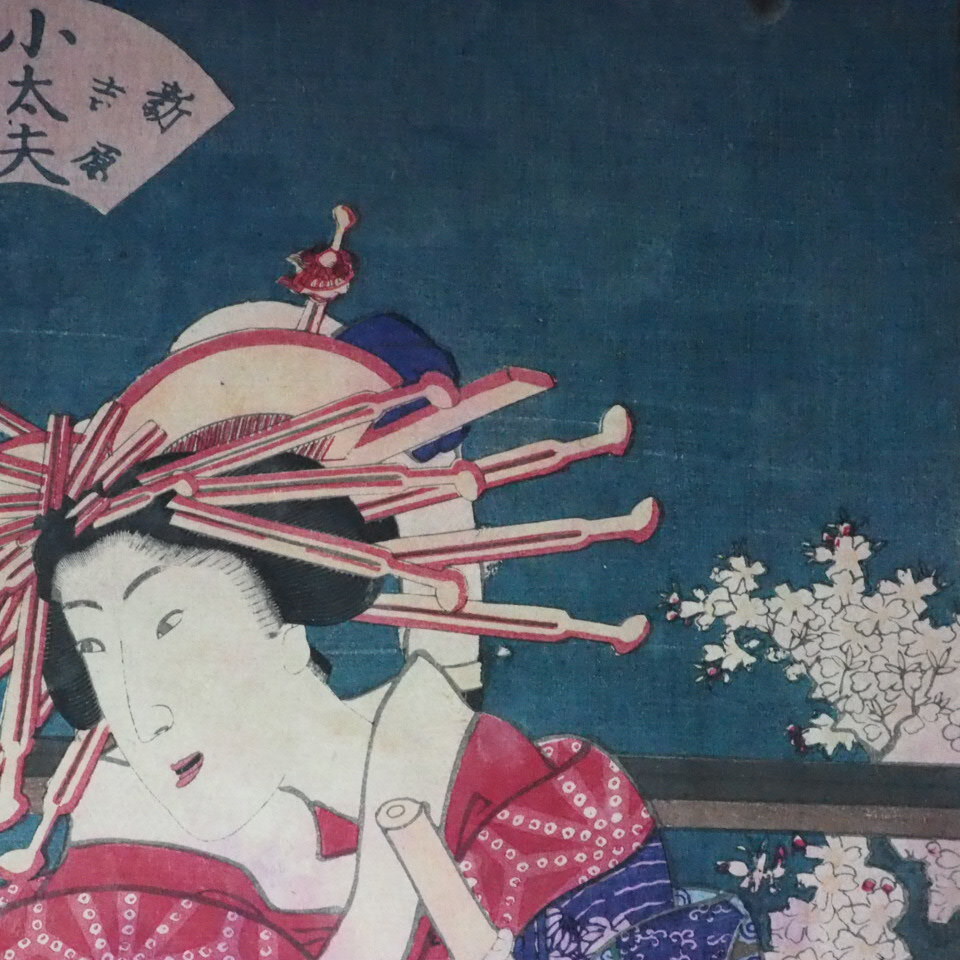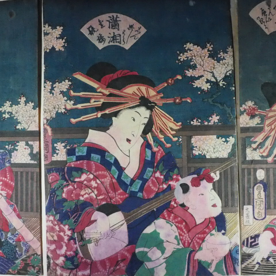 美人画 浮世絵木版画 錦絵 三代目歌川豊国「風流三曲」3枚綴り