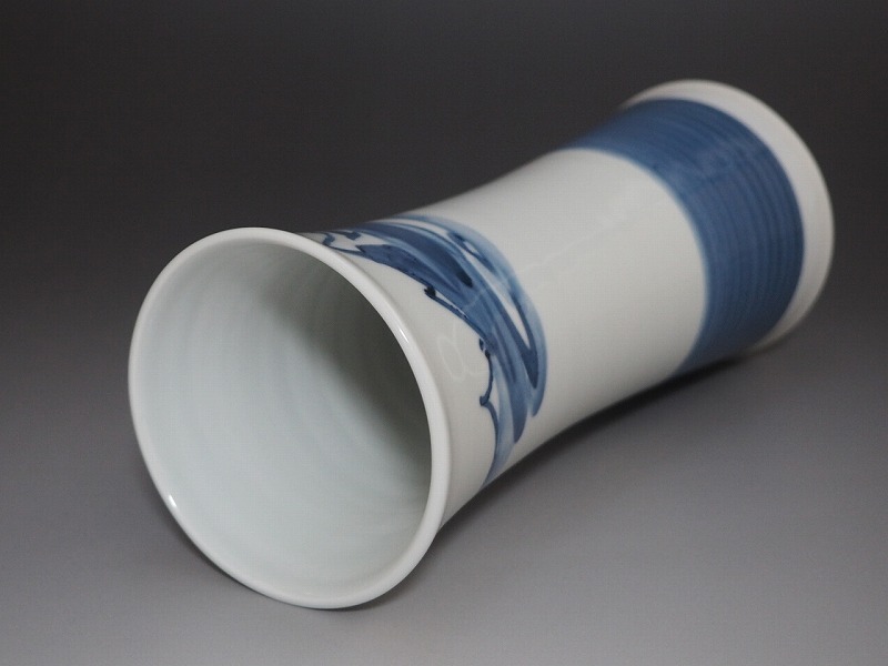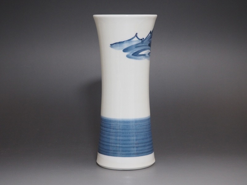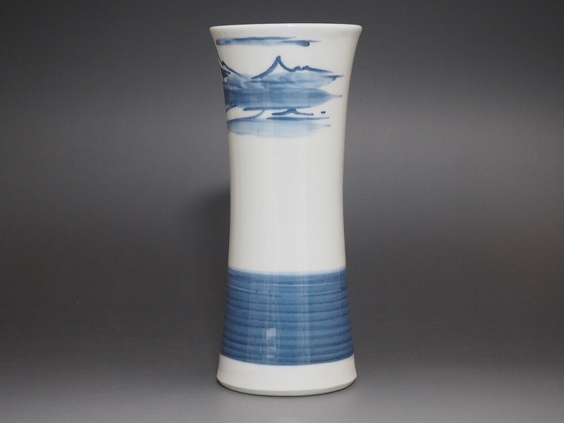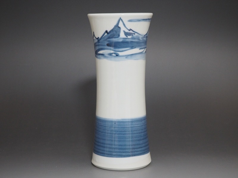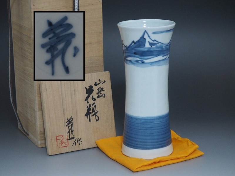 | B1097 篠田義一 作 山岳 花瓶 共箱付 ☆ 茶道具 華道具 花道具 花器 飾壺 飾壷 花入 花生 花活 染付 磁器 作家物 在銘 陶印 美品 良品 無傷 | ||