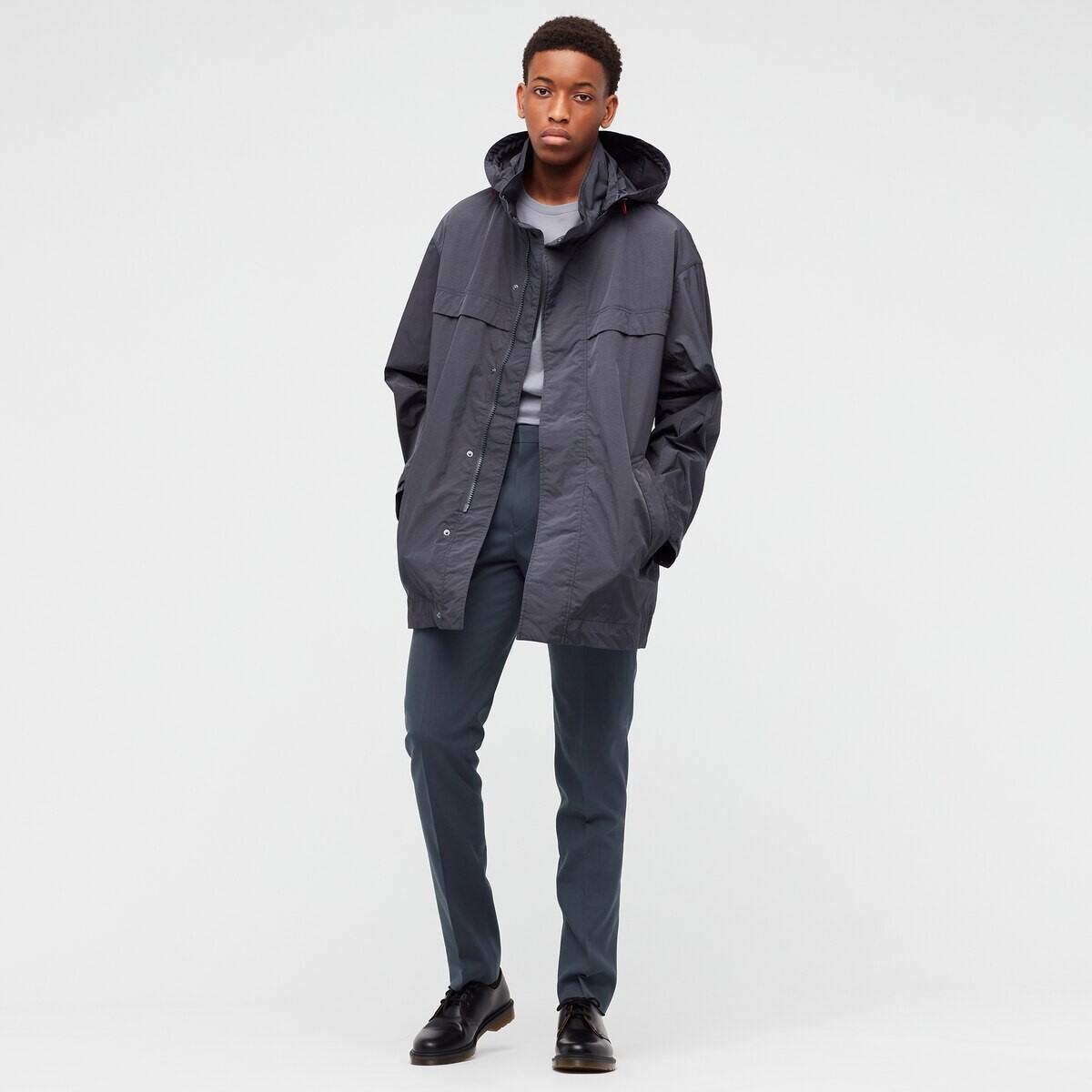 黒L UNIQLO×Jil Sander+Jオーバーサイズフーデッドハーフコート ブラック ナイロンジャケット パーカー 2021SS ユニクロ×ジル・サンダー