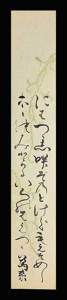紙本肉筆未装短冊1葉 作品寸法:36.2cm x 6.0cm 商品状態:良好な保存の品です。 冷泉為系(れいぜいためつぐ) 伯爵。京都生。冷泉為紀の長男。『小倉山荘色紙』等五冊を選び翻刻した『五部抄』を出版し、和歌の存続に力を注いだ。殿掌・御歌所参候・正三位。昭和21年(1946)歿、65才。 (出典:思文閣『美術人名辞典』) |