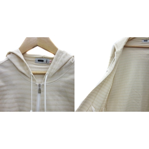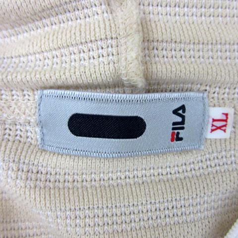 フィラ FILA ジャケット パーカー ミドル丈 ジップアップ ボーダー柄 大きいサイズ XL ベージュ 白 ホワイト /YS34 レディース