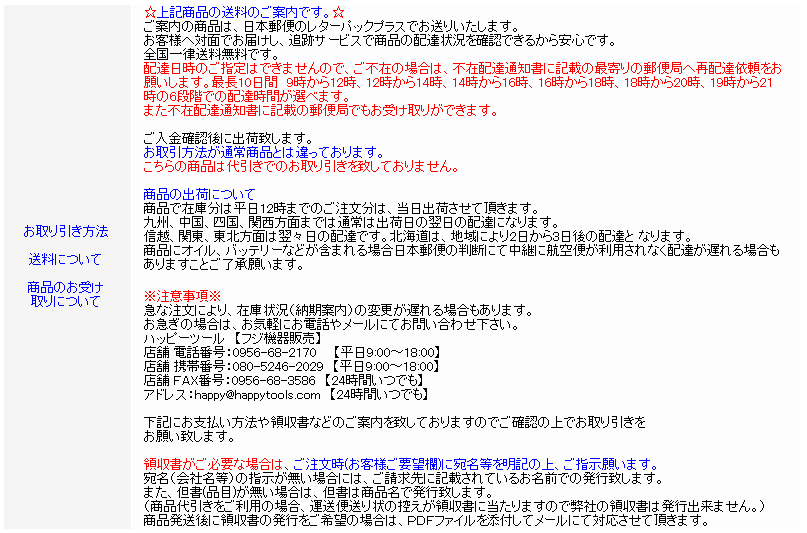 | 商品説明 | 在庫有!代引発送不可!!インボイス制度対応!! |