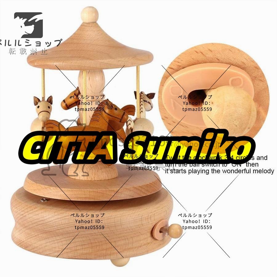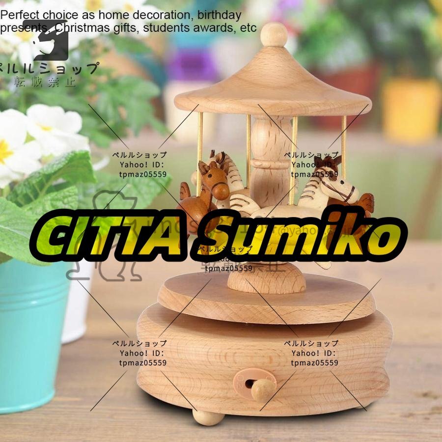 女の子のためのオルゴール、木製ヴィンテージオルゴール美しいターン馬形の木製工芸品ギフト家の装飾