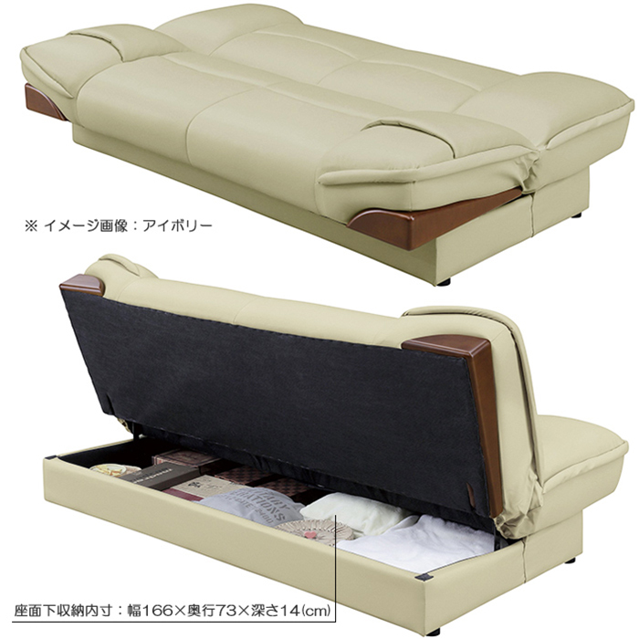 収納付きソファベッド 合皮 SPU PVC ソファーベッド 収納庫 座面下収納 収納部 3人用 一人暮らし 安い ダークブラウン