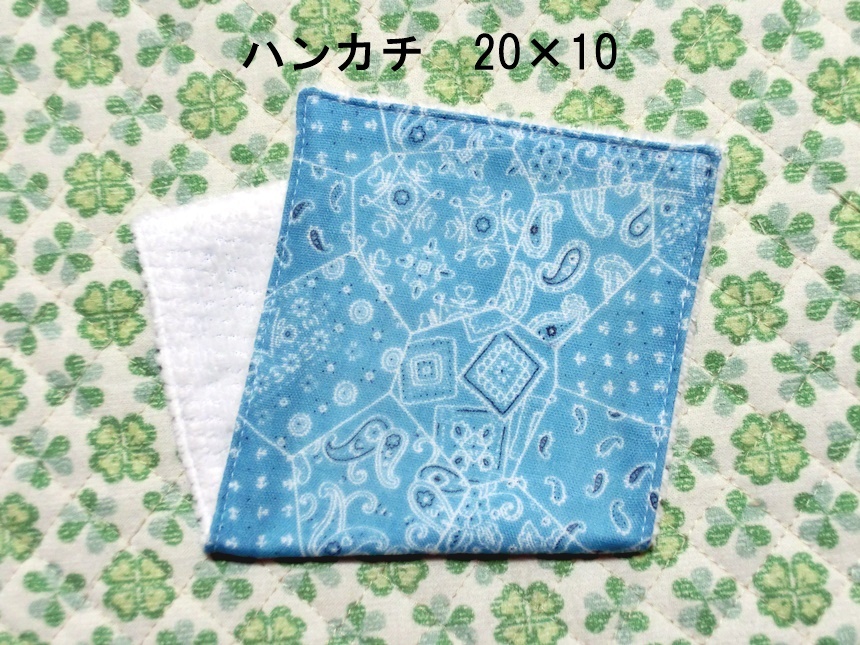 ポケットに収まりやすい、ハンドメイド・長方形20×10センチのダブルガーゼ&タオルのハンカチです。