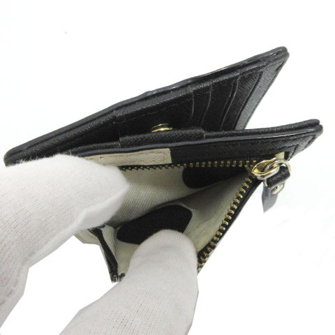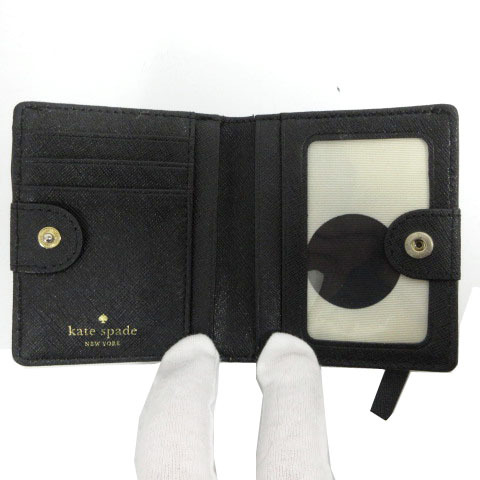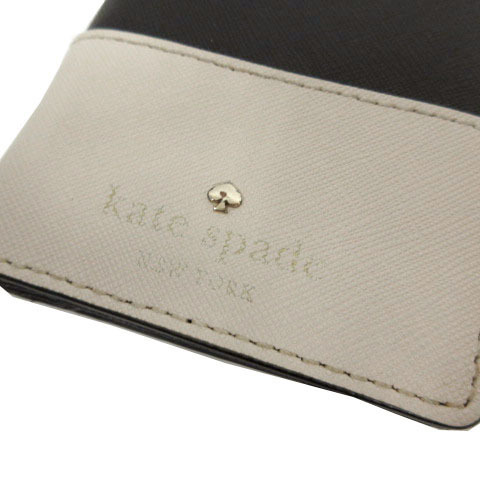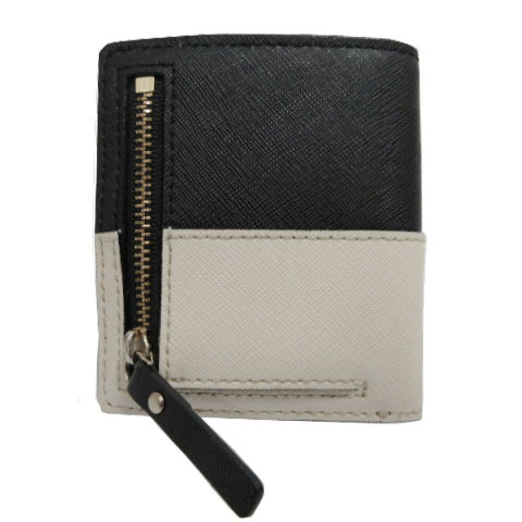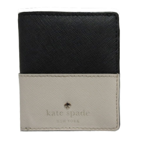 ケイトスペード KATE SPADE ミニ財布 二つ折り PVCレザー 型押し ロゴ バイカラー 配色 ブラック 黒 ベージュ レディース