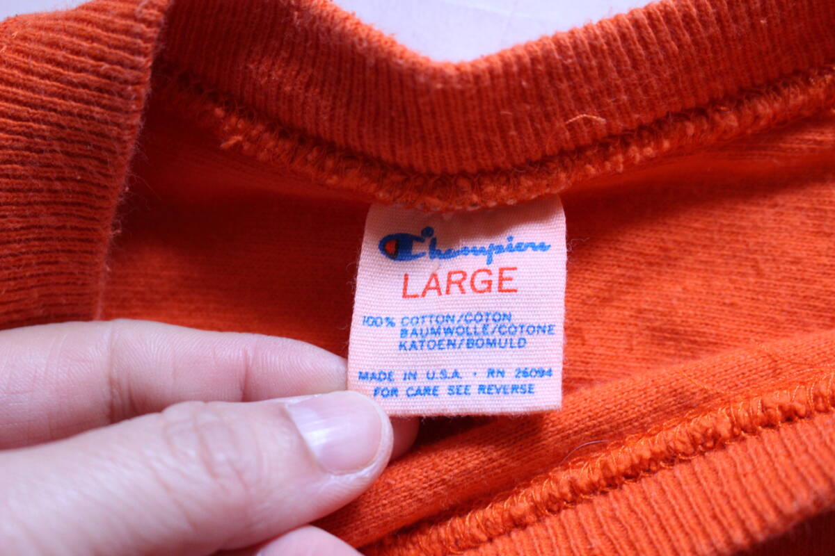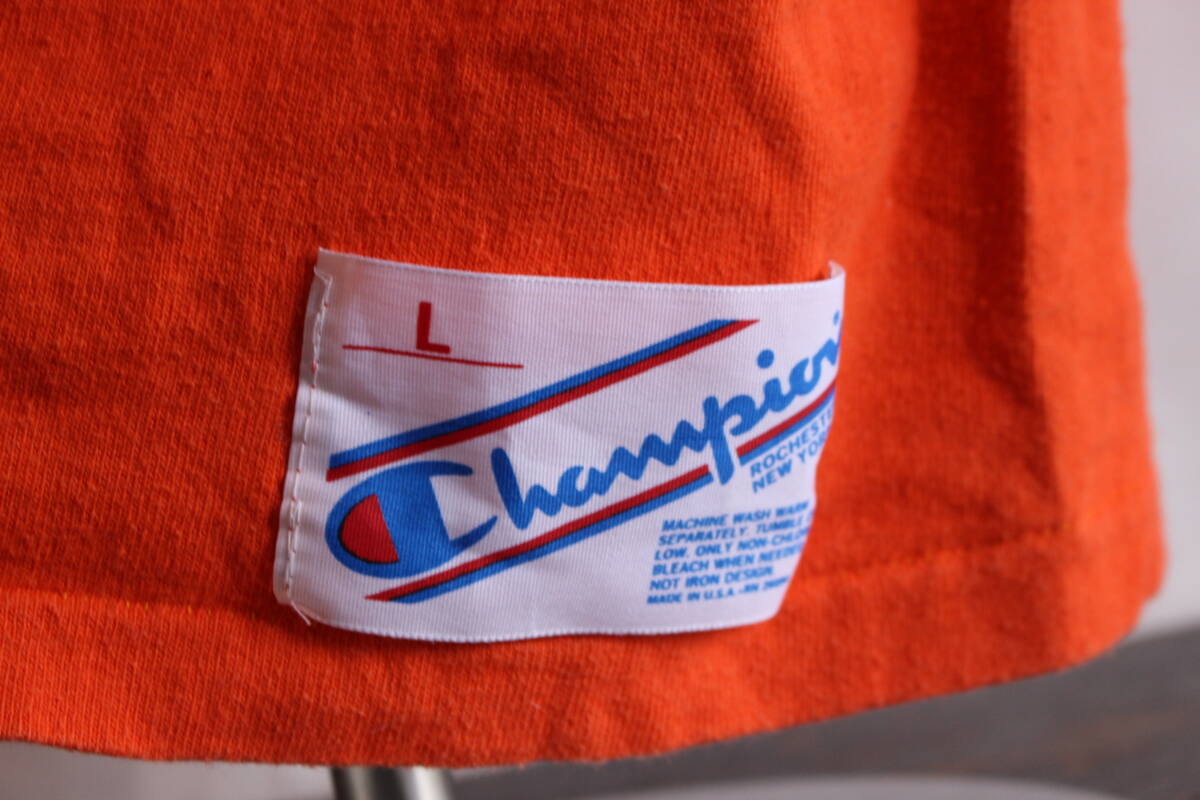 送料無料 ■ USA製 アメリカ製 Champion チャンピオン ビンテージ フットボール Tシャツ トリコタグ L 80s デンバー大学 オレンジ 80年代 ■97-1■