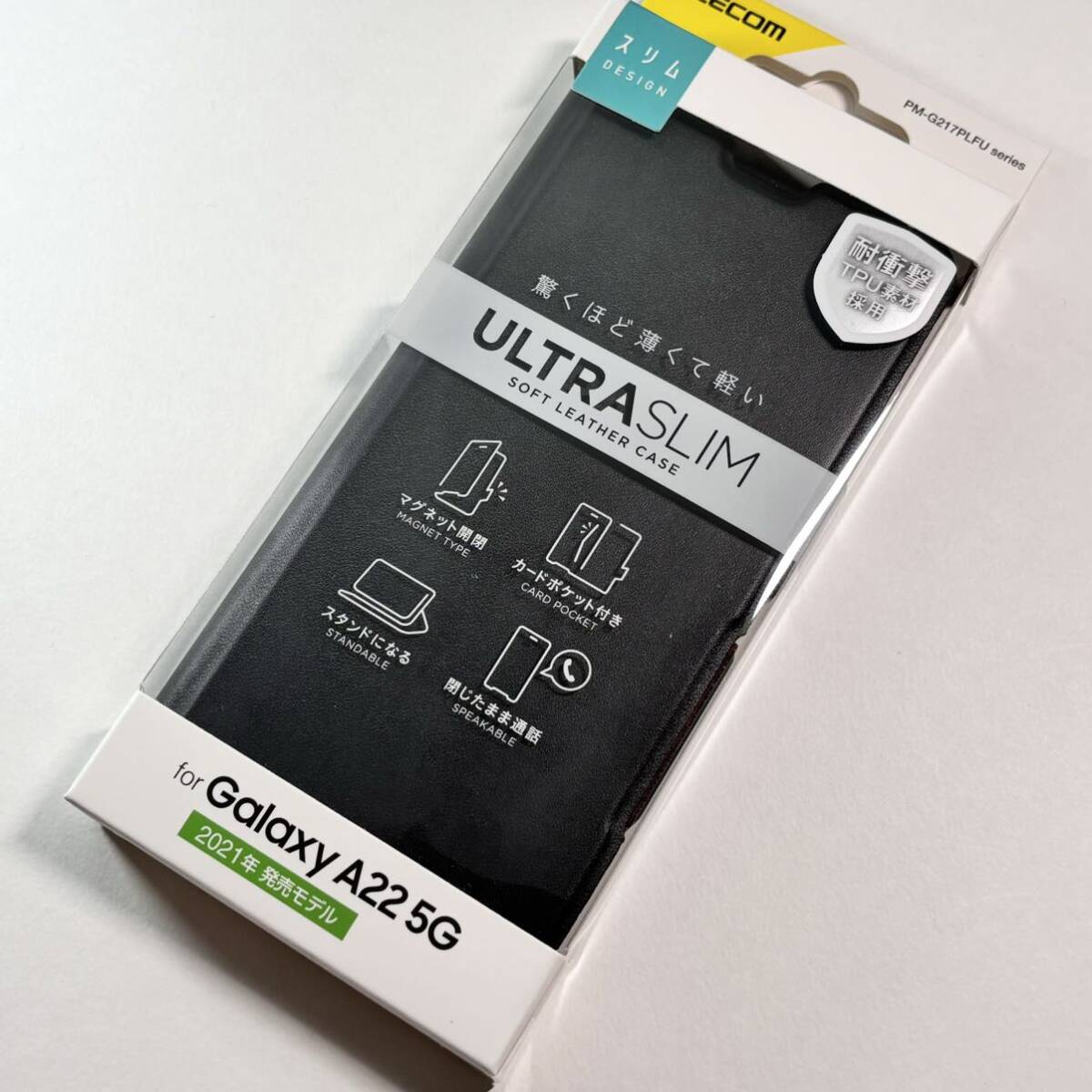本体の薄さ、軽さを損ねない薄型・超軽量なウルトラスリムタイプのGalaxy A22 5G(SC-56B)用ソフトレザーケース(手帳型)です。