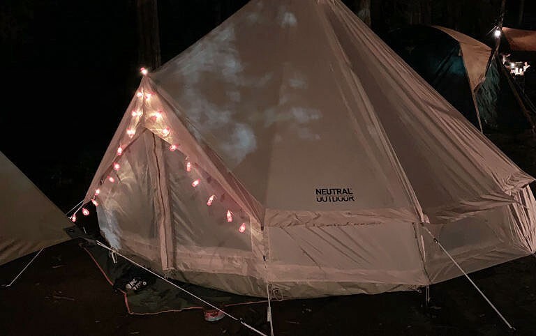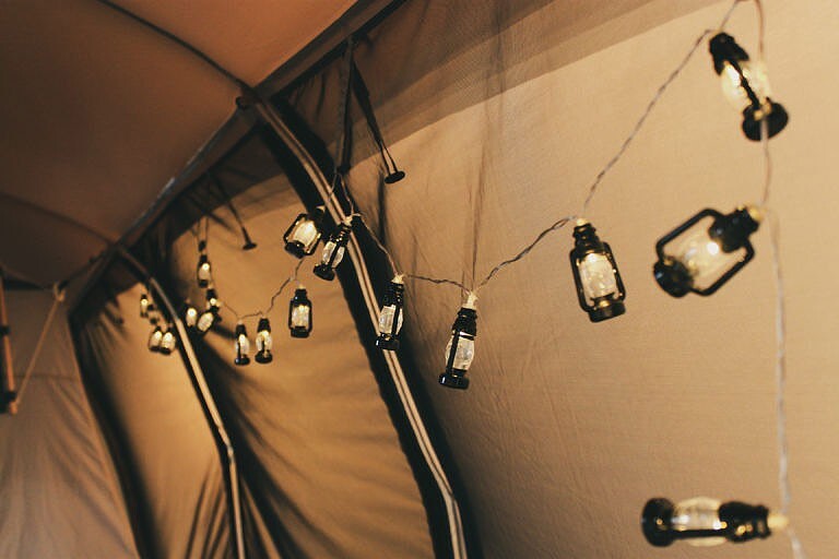 ホームパーティーのデコレーションをはじめ、ウッドデッキを演出する際に、パラソルに巻き付けたり、あと最近では、キャンプのテントに付けて演出するってのも流行ってます。