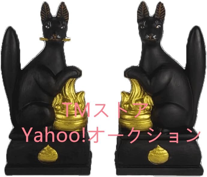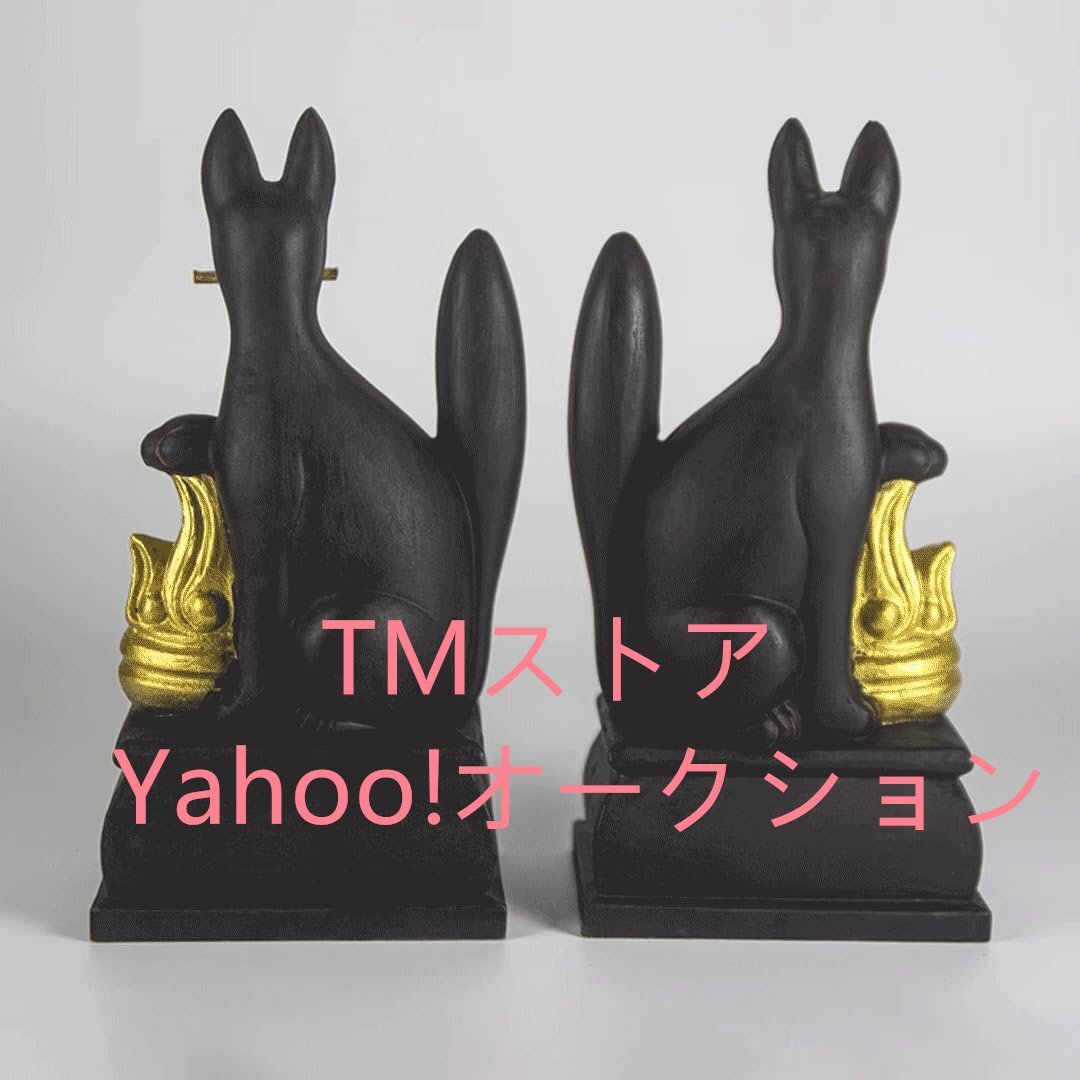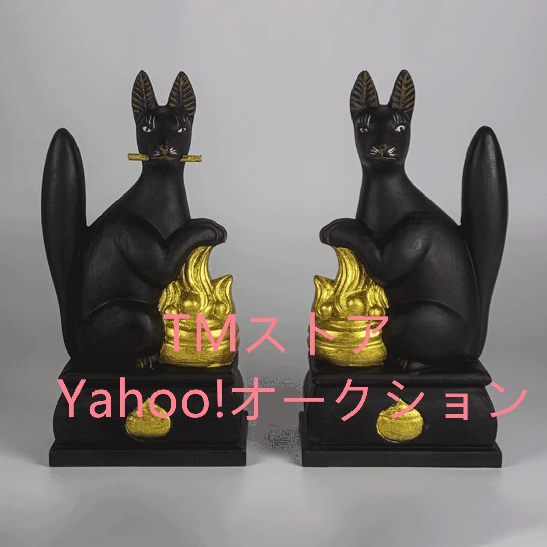 稲荷神の神使 【狐(一対)】 木製 極彩色 金運 風水 総高14cm 木彫りの置物
