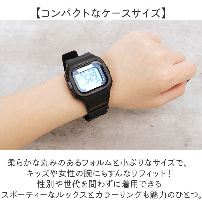 | 商品説明 | ・・【冒険心をくすぐるデザイン】 ・スタイリッシュなデザインがボーイズの腕で光る「MAGソーラーウォッチ ルクサー」が新登場! ・【コンパクトなケースサイズ】 ・柔らかな丸みのあるフォルムと小ぶりなサイズで、キッズや女性の腕にもすんなりフィット! ・【シンプルで見やすい液晶ウィンドウ】 ・秒数までパッと読み取れるデジタル時計に、カレンダー・曜日機能を搭載したシンプルデザイン。 ・【ソーラーパワー×リチウム電池】 ・日光や照明の光で電池の消費が抑えられる「ソーラー×リチウム電池」のデュアルパワー駆動式。 ・※CR2032型ボタン型電池1個使用。お試し用電池が内蔵されています。 ・【機能切り替えスイッチで簡単操作】 ・文字盤外側の「LIGHT」「MODE」「START」「RESET」の4つボタンで様々な機能を簡単操作! ・【ストップウォッチ機能】 ・スポーツシーンやトレーニングに便利な2種類のストップウォッチ機能を搭載! ・※通常時刻表示で「MODE」ボタンを押して起動。「通常計測」と「スプリットタイム計測」の2種類の使い分けが可能。 ・【アラーム機能&報時機能】 ・会議中の経過時間の管理などに活躍!アクティブパーソンに嬉しい「アラーム・報時機能」付き。 ・※通常時刻表示で「MODE」ボタンを2回押して起動。「START」ボタンで「アラーム」「報時機能」を切り替え可能。 ・【10気圧防水機能】 ・手を洗う時や、屋外で突然にわか雨に降られても安心な「生活防水仕様」(10気圧防水)。 ・【バックライト機能付き】 ・文字盤左上の「LIGHT」ボタンを押すとELバッグライトが点灯。暗い場所やアウトドアで便利! ・【12/24時間表示切替機能】 ・キッズからビジネスパーソンまで、時計を使う人に合わせて見やすくカスタマイズ。 ・【ユニセックスデザイン】 ・性別や世代を問わずに着用できるスポーティーなルックスとカラーリングも魅力のひとつ。 |
