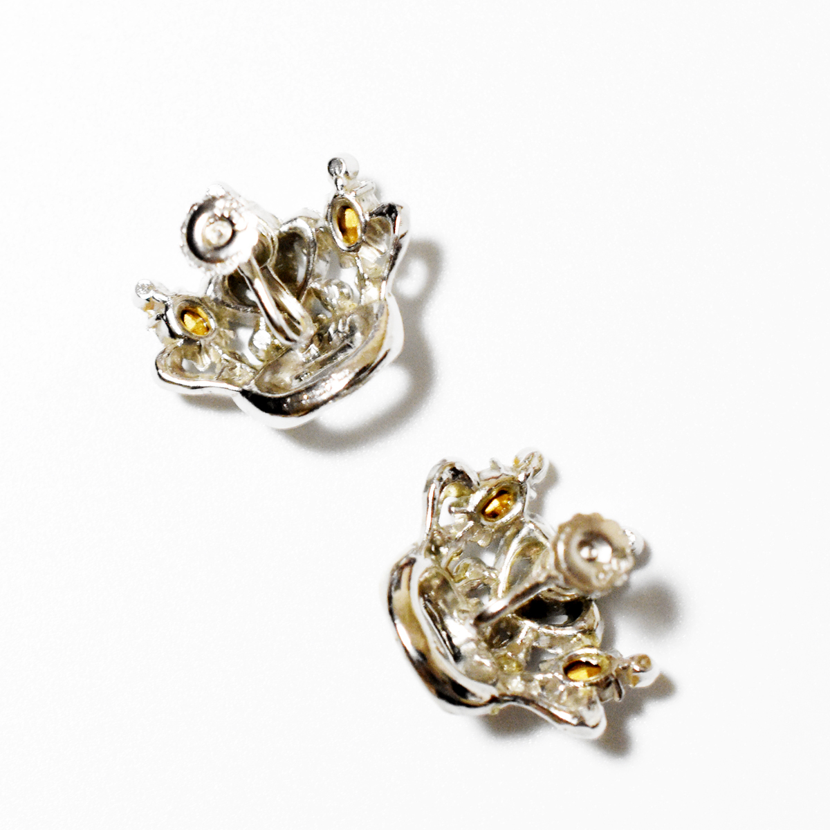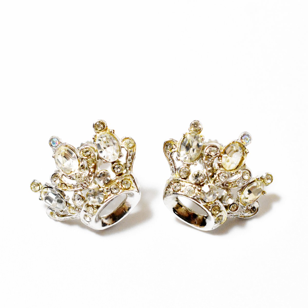 クリアラインストーンで表現されたクラウンモチーフのヴィンテージイヤリング。