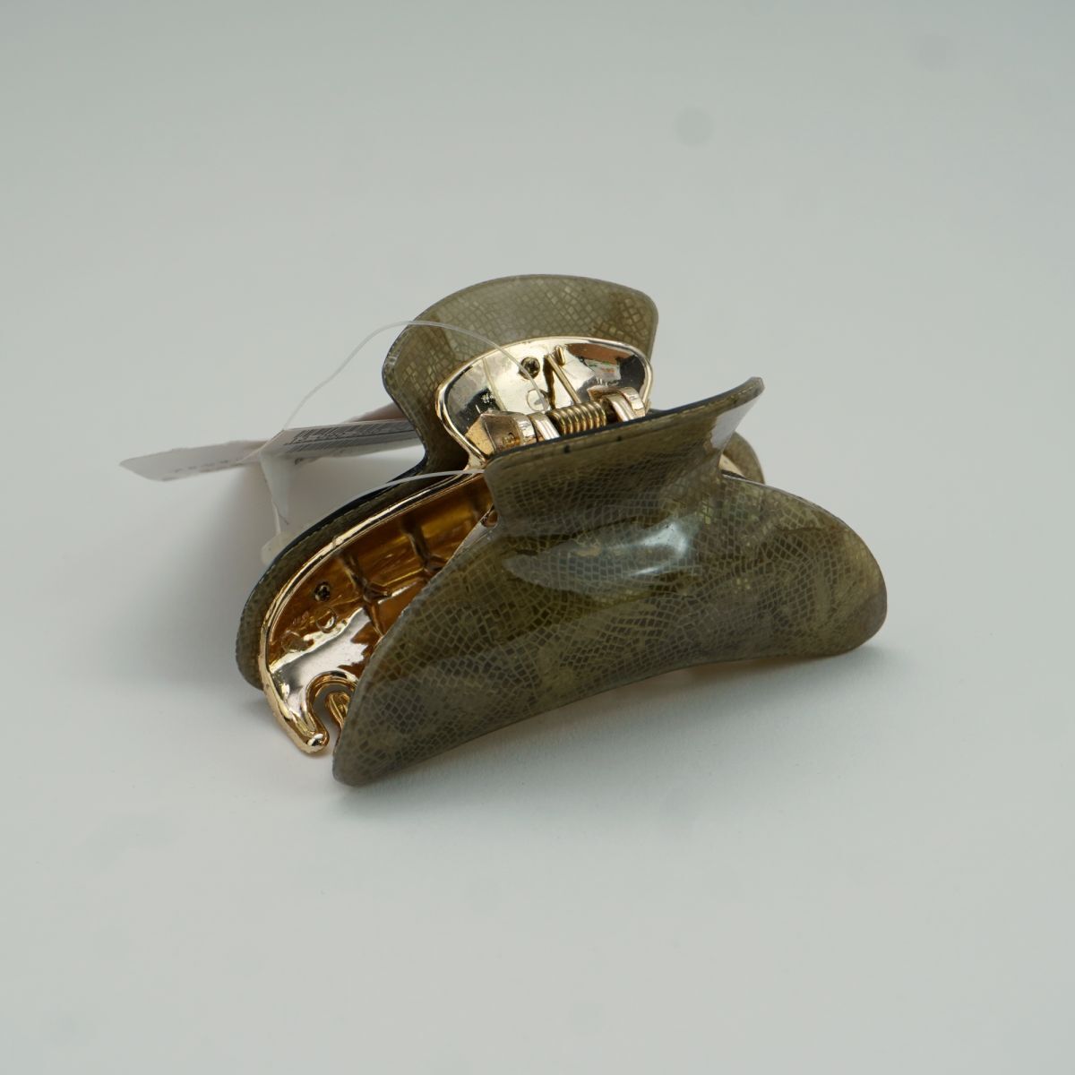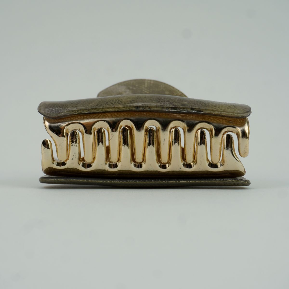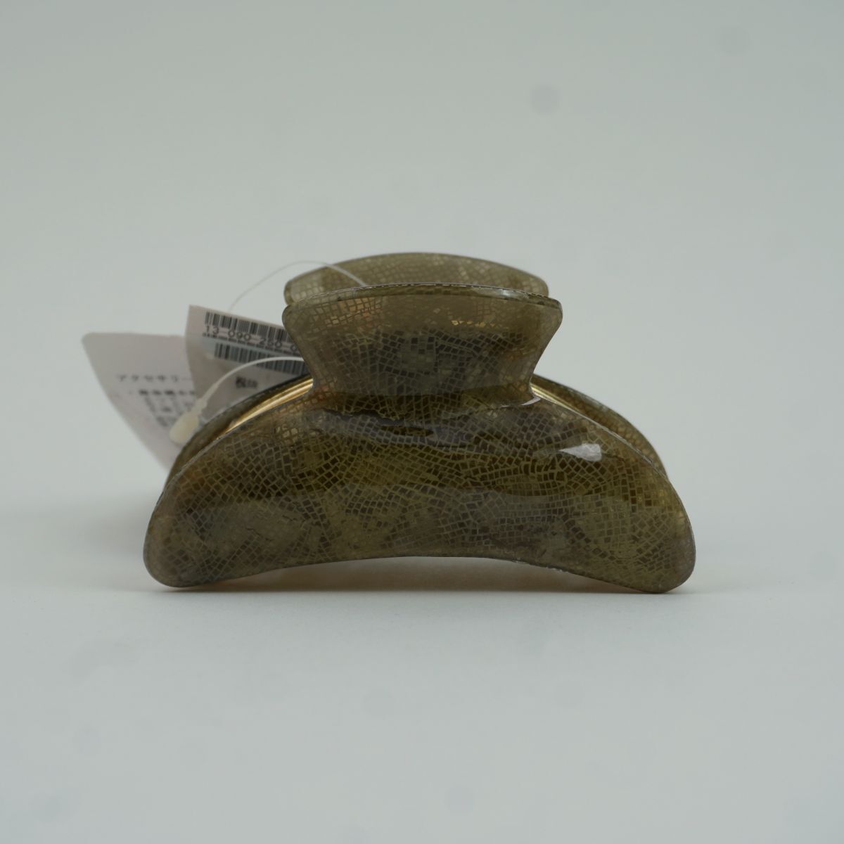 新品未使用 ヘアクリップ 総柄 カーキ ゴールド 袋付き@KG32