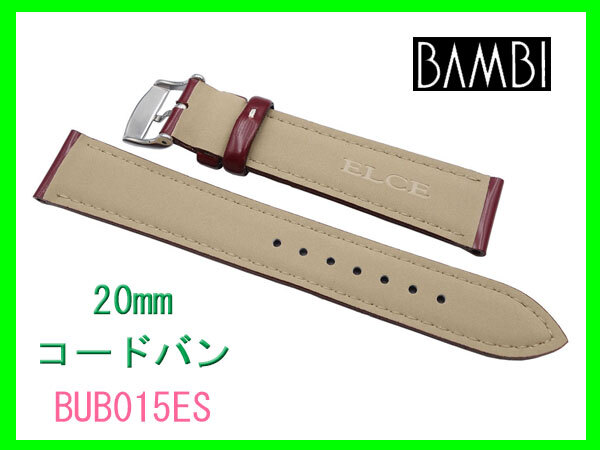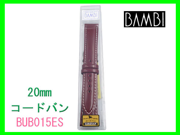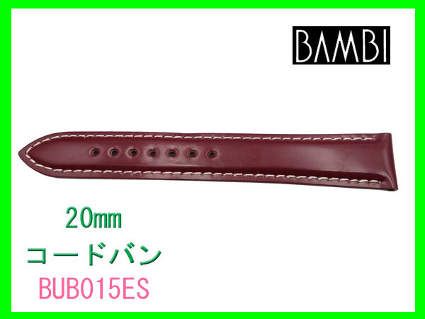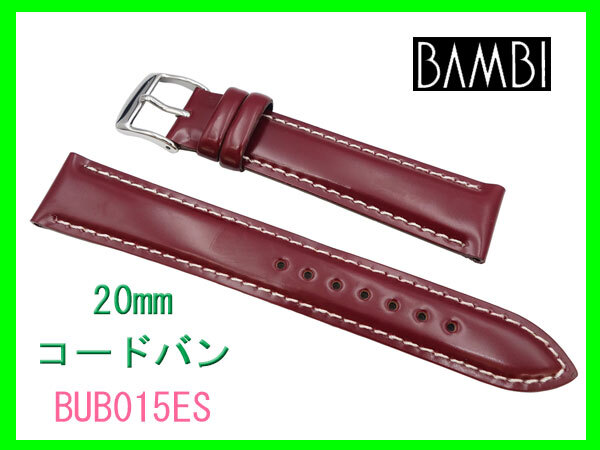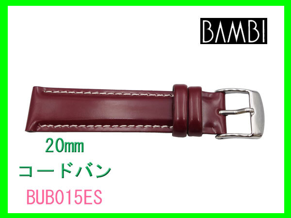 20mm BUE015ES バンビ コードバン ワイン 白ステッチ 時計ベルト 馬革 腕時計 ベルト 新品 未使用 正規品