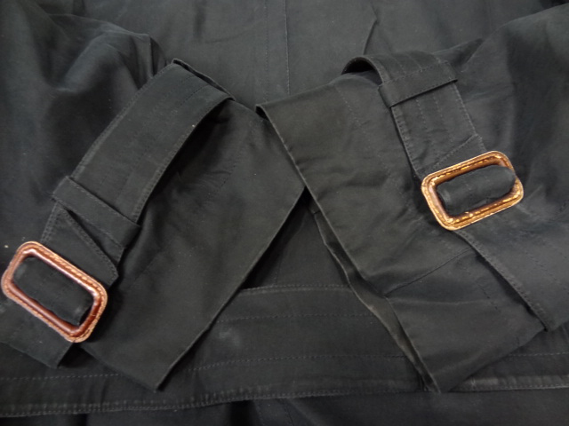 ビンテージ HERMES エルメス フランス製 ユニセックス チンスト ベルト 総柄 ライニング トレンチコート ステンカラー カシミア ブラック