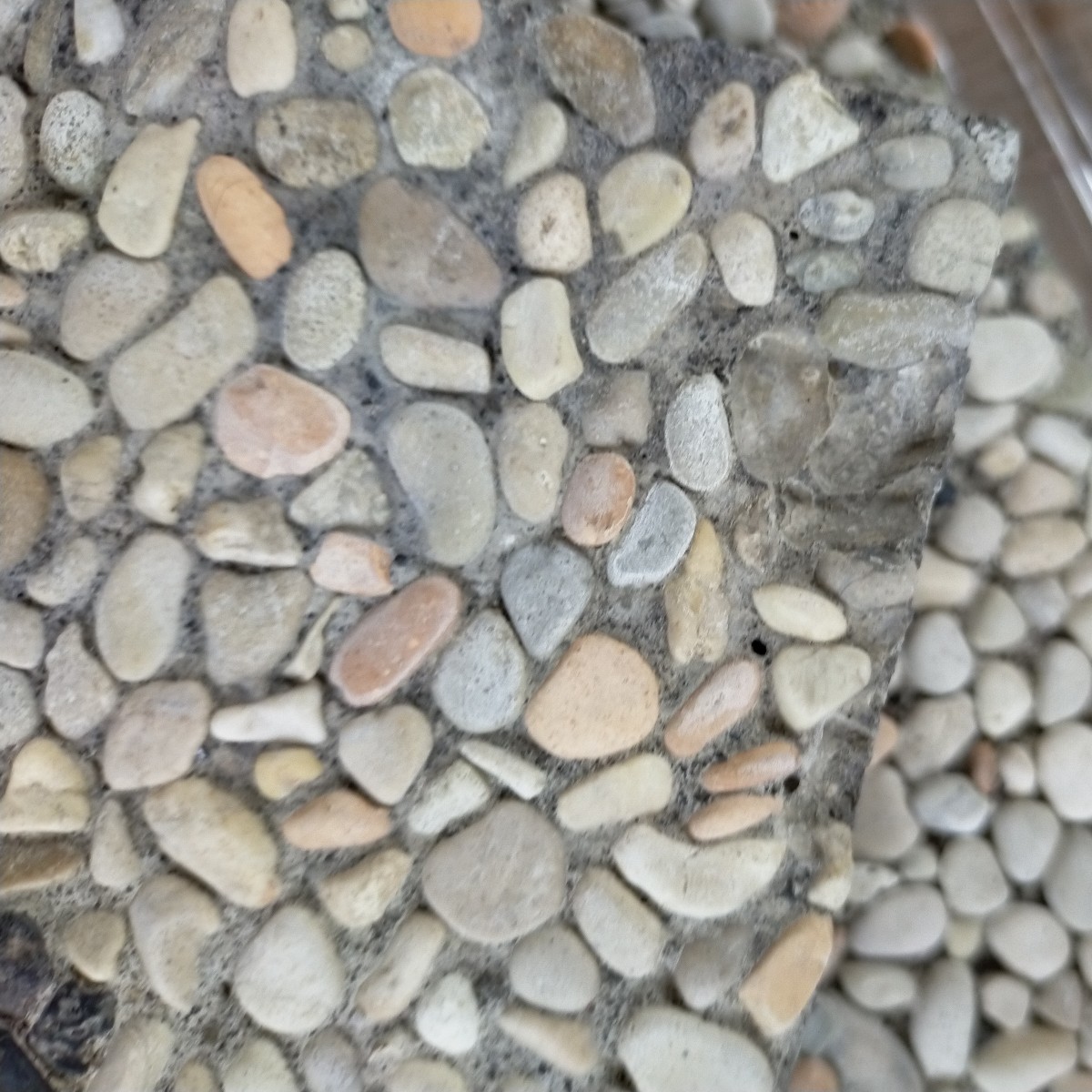 小さい玉石で洗い晒しにして作品にして頂いております。イメージで似ている作品とこれ何?と思う作品が