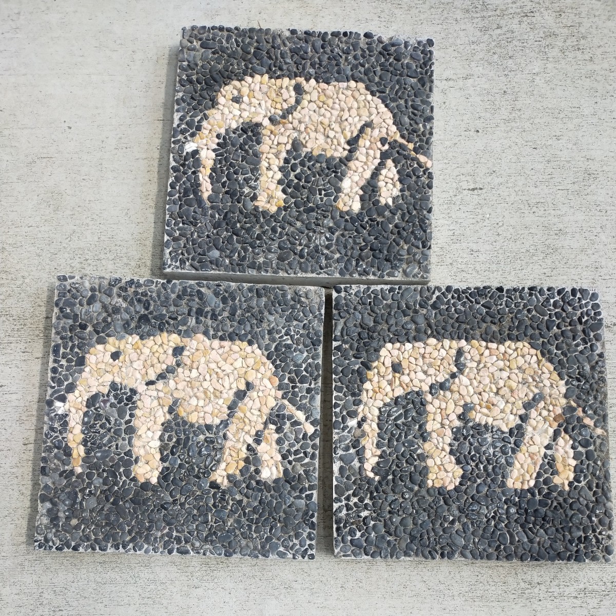 セメント タイル デコレーションストーン 踏み石  象 ゾウさん  縦横約30cm 厚さ約3cm 3枚セット 飛びに 歩道専用 車乗禁止