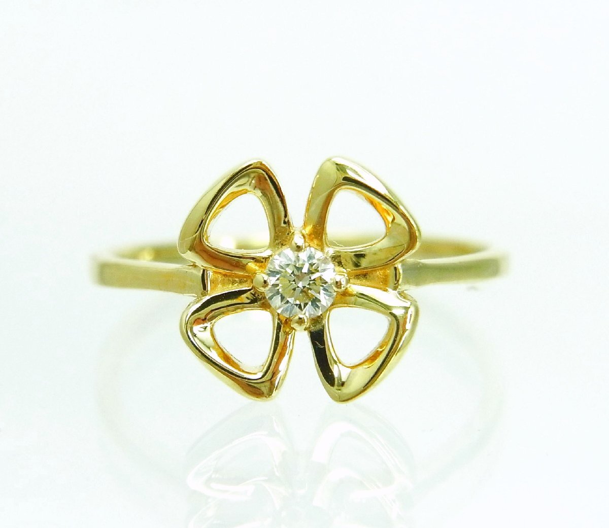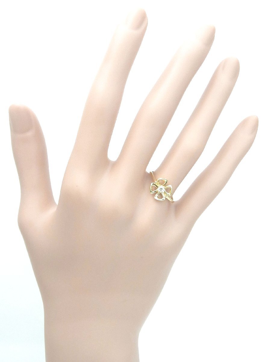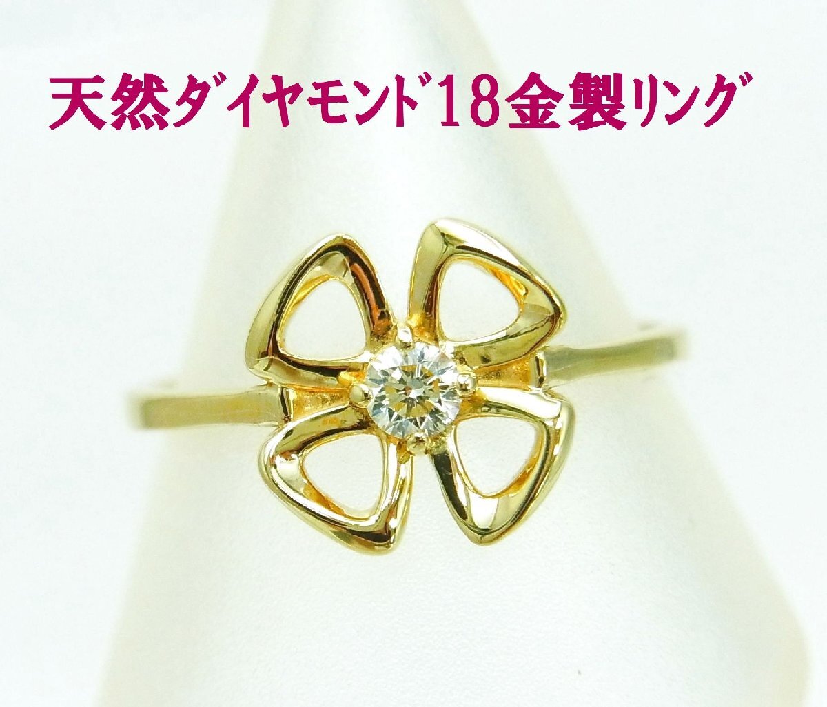 大人気 幸運の四葉のクローバー上質天然ダイヤモンド0.1ct一粒 18金製リング 卸価格 動画あり 送料込み
