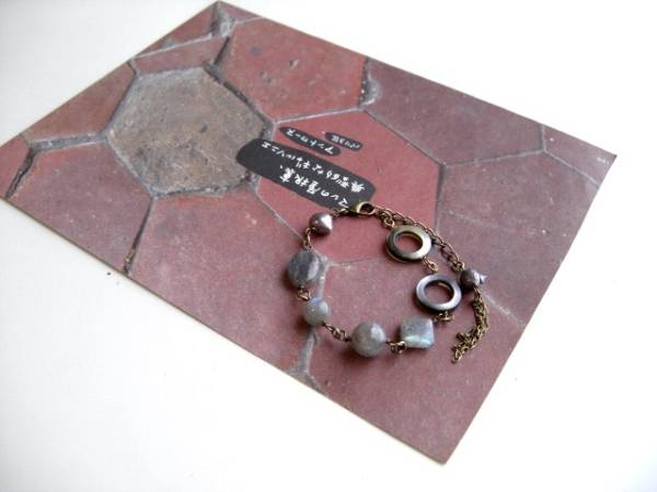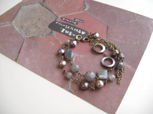 女の子の時間・・シリーズです♪巴里の骨董屋さん・・神秘的なラブラドライトとパープルグレーの淡水パールのブレスレット2点セットです♪どちらもブルーグ レー系のお色でまとめてアンティークな表情です♪真ん中のブレスレットはラブラドライトの6ミリから14ミリ位までの丸玉やランダムカット、スクエアやオー バルなどのデザイン違いにバロックの淡水パールやオーバルリングやスクエアリングの黒蝶貝を合わせました♪長さは全長23センチ位で調節 自由です♪右のブレスレットは7ミリから9ミリ位までのバロックの淡水パールに6ミリのラブラドライトを合わせました♪長さは全長23センチ位で調節自由です♪お揃いのネックレスも出品しています♪♪シンプルで長く着けていただけるデザ インを考えて作りました♪ハンドメイドをご理解頂いてノークレーム、ノーリターンでお願いします