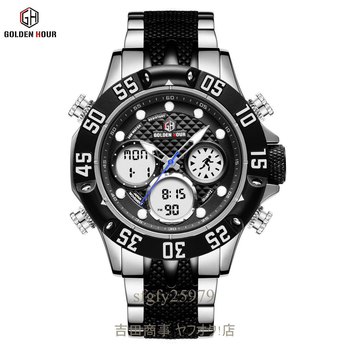 A9965☆新品上質 クロノグラフ+カレンダー メンズ 男性 腕時計 クォーツ式 防水 クロノグラフ アウタドア