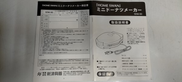 新津興器 HOME SWAN ミニドーナツメーカー SDM-60 兵庫県 三田市発 お菓子 クッキング ホームパーティー 中古 現状 程度良 直接引取歓迎
