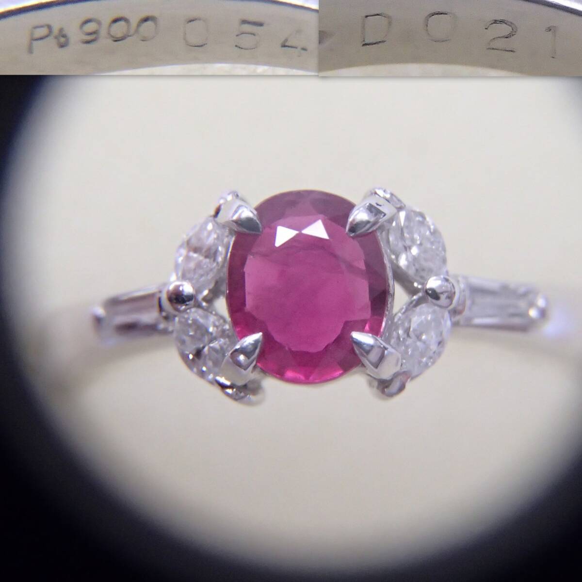 12号 Pt900 ルビー 0.54ct ダイヤ 0.21ct リング プラチナ 指輪 0.5 0.2 ダイヤモンド